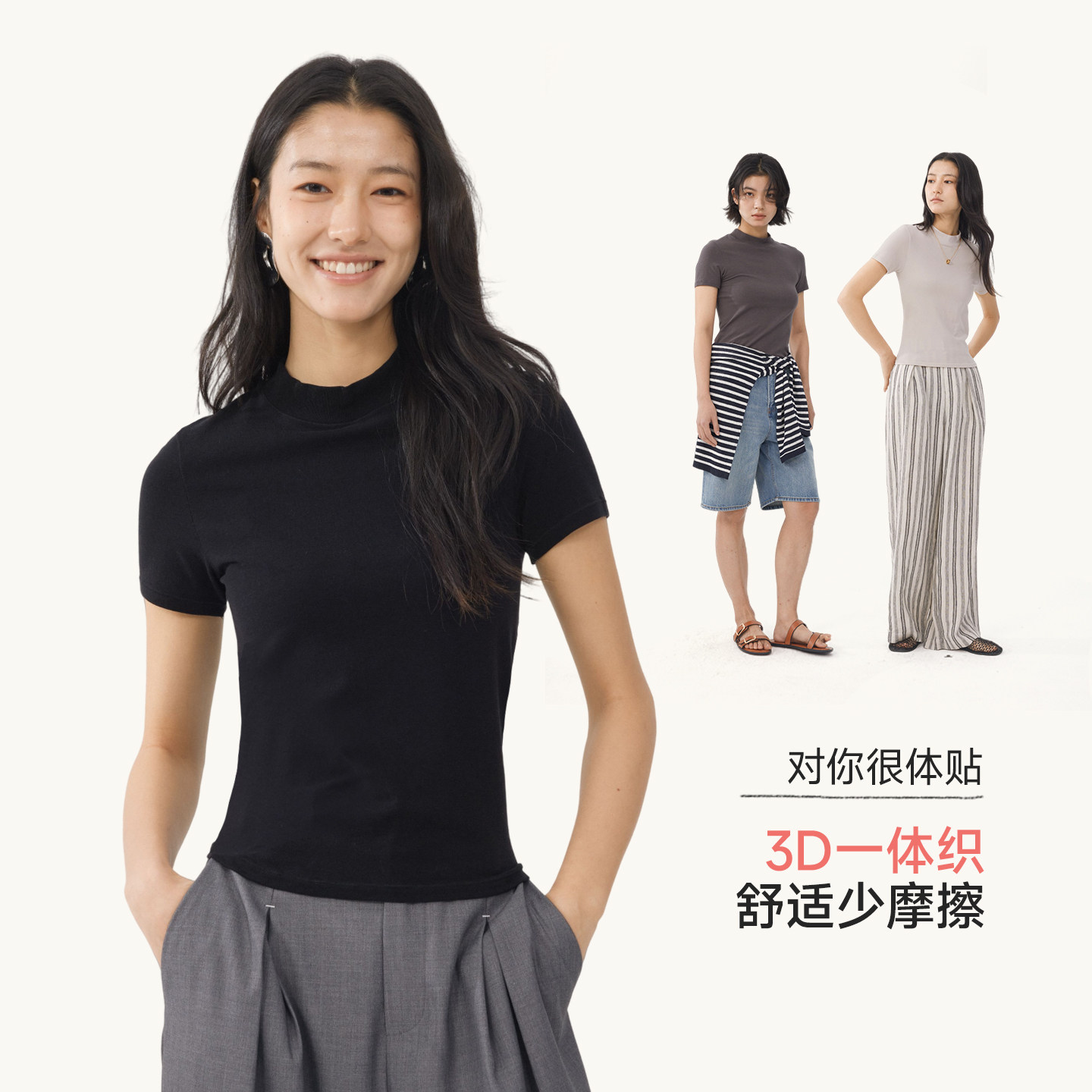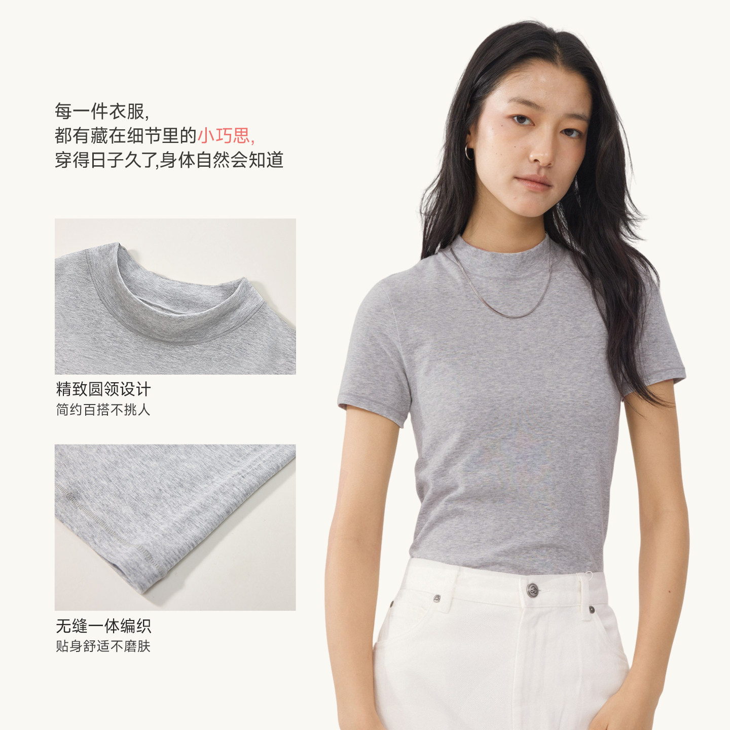 短袖 Q21一体织高弹长袖 女士打底天丝棉正肩圆领上衣 活动专享