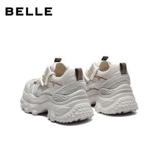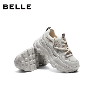 百丽厚底增高银色网面老爹鞋 子F6U1DBM6 女2026夏新商场舒适休闲鞋