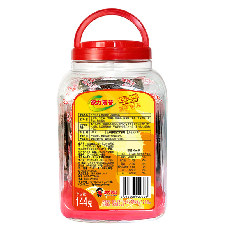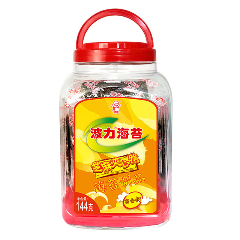 即食休闲办公零食海苔脆片紫菜海味B 波力海苔芝麻夹心脆144g
