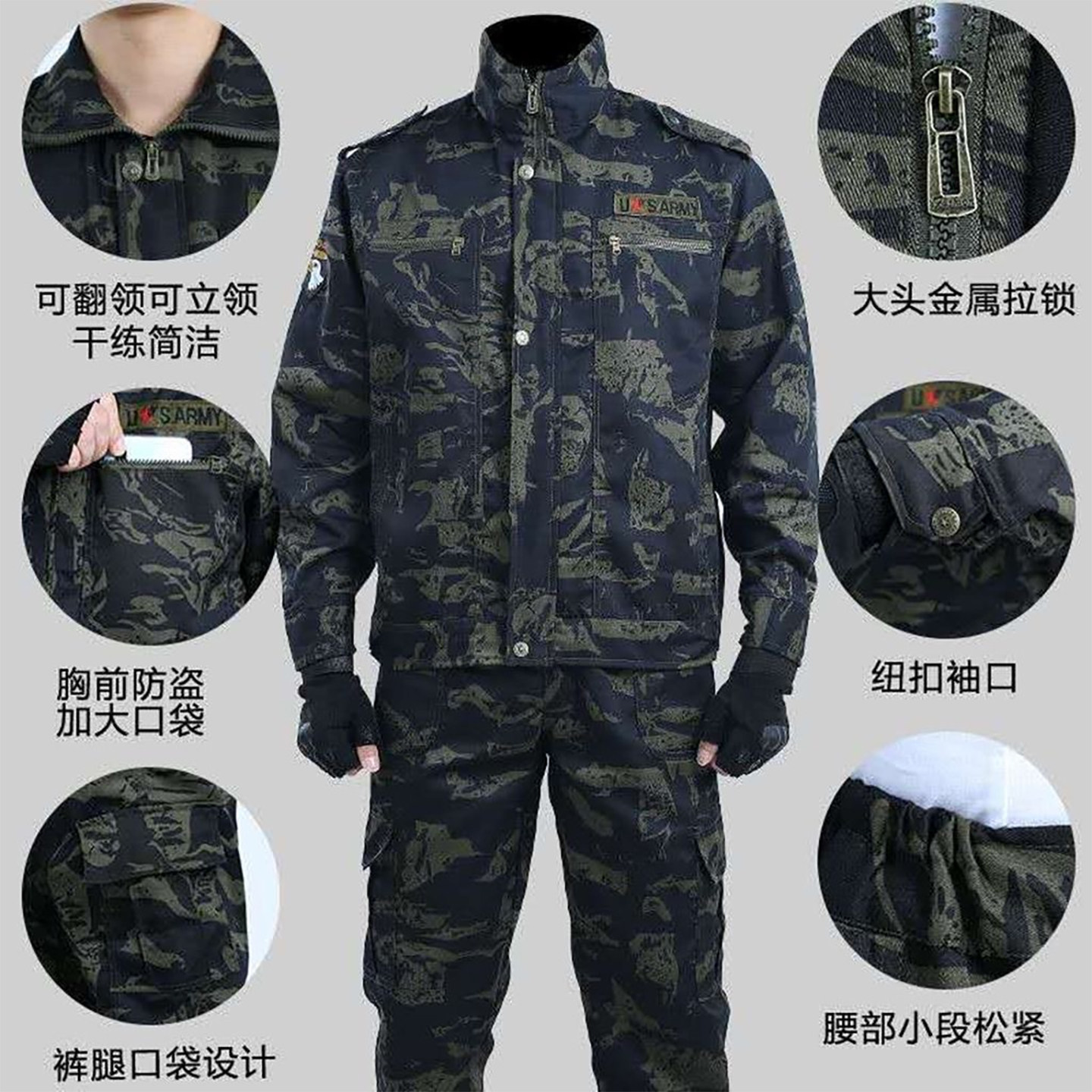 劳保工衣户外制服高品质长袖 耐磨新款 男 套装 工地工作服迷彩服工装