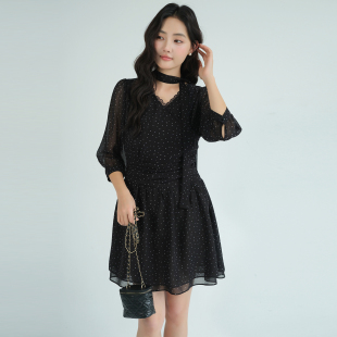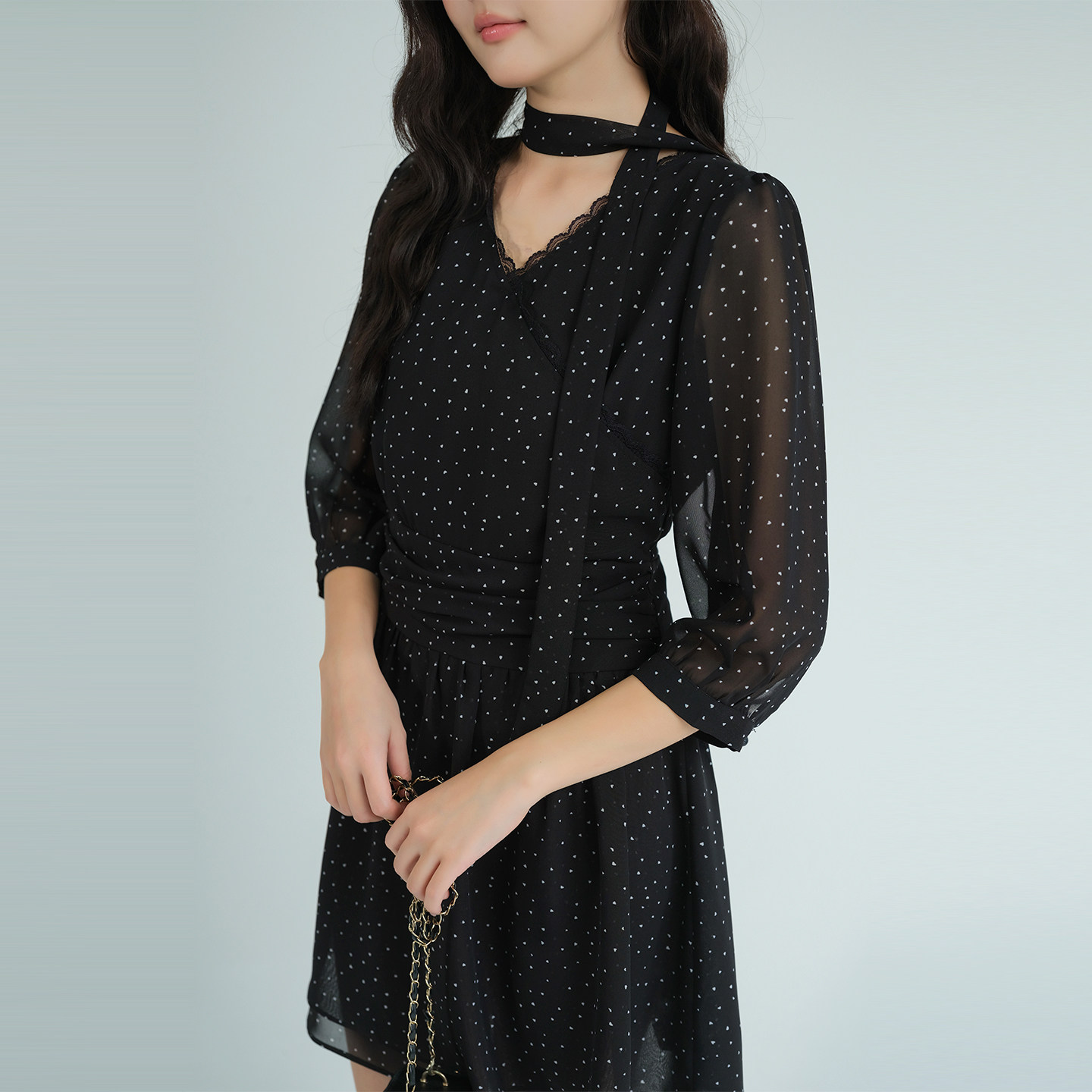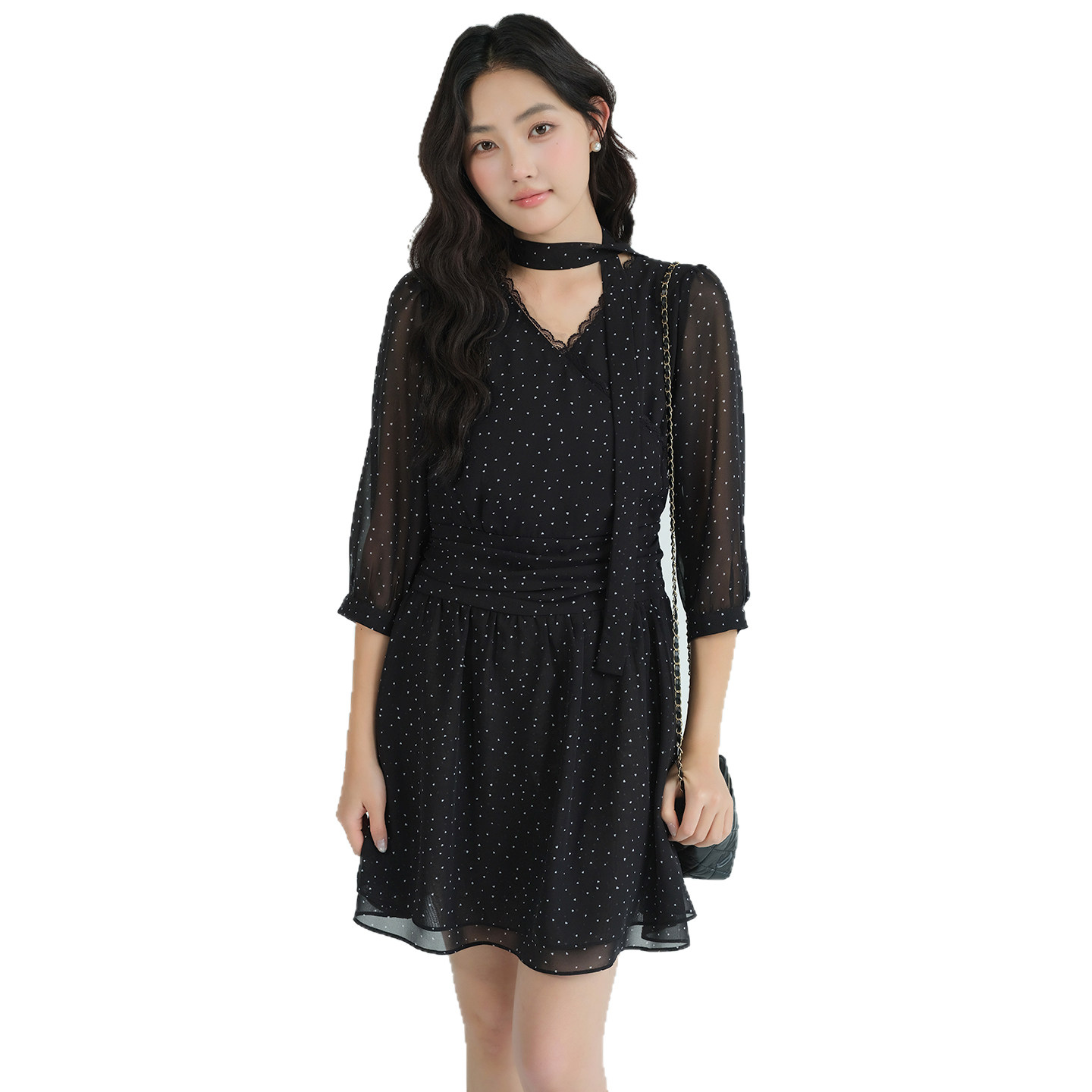 新款 飘带V领波点雪纺裙2026夏装 胖MM度假风连衣裙 女装 蓝若水大码