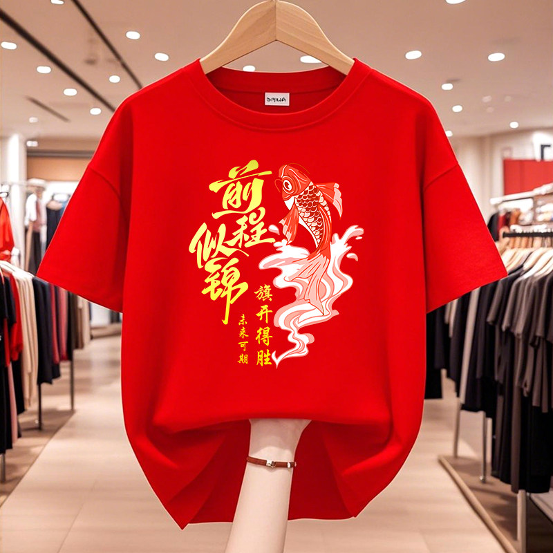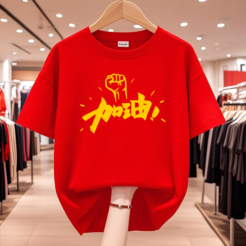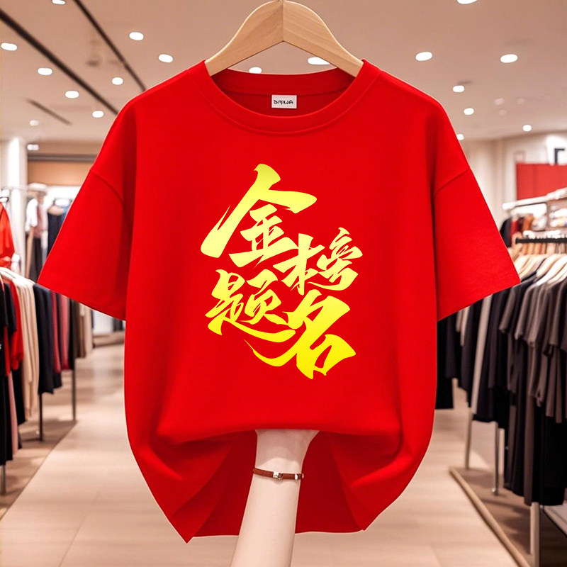 2026高考T恤中考加油短袖 红色送考衣服必胜旗开得胜学生班服定制