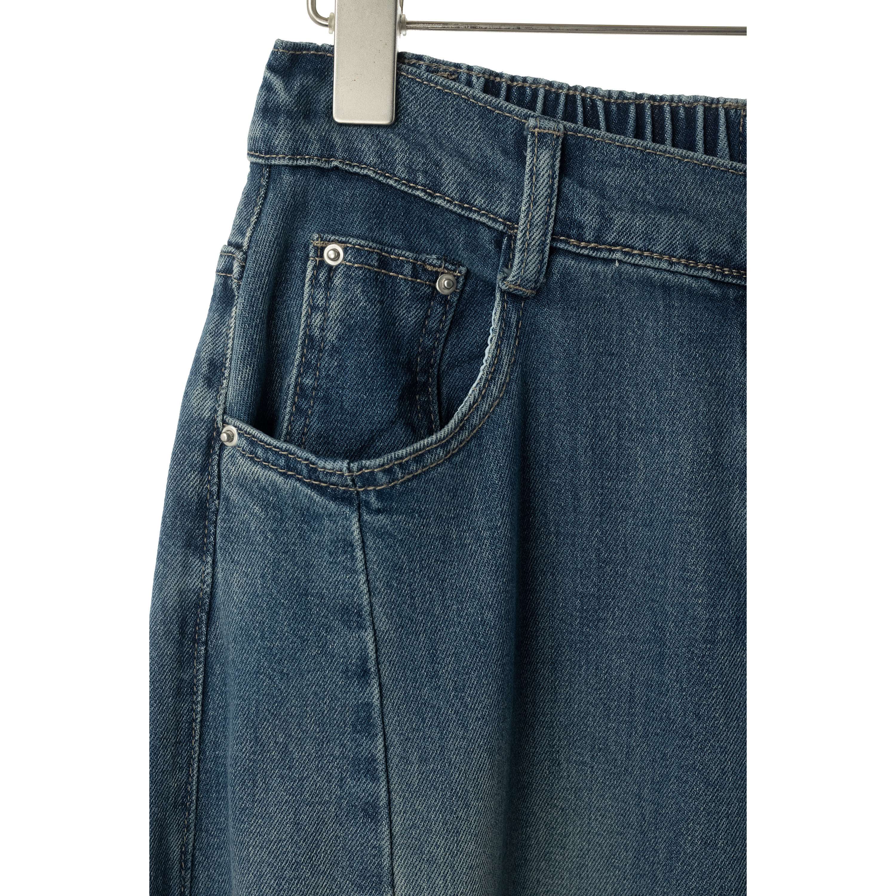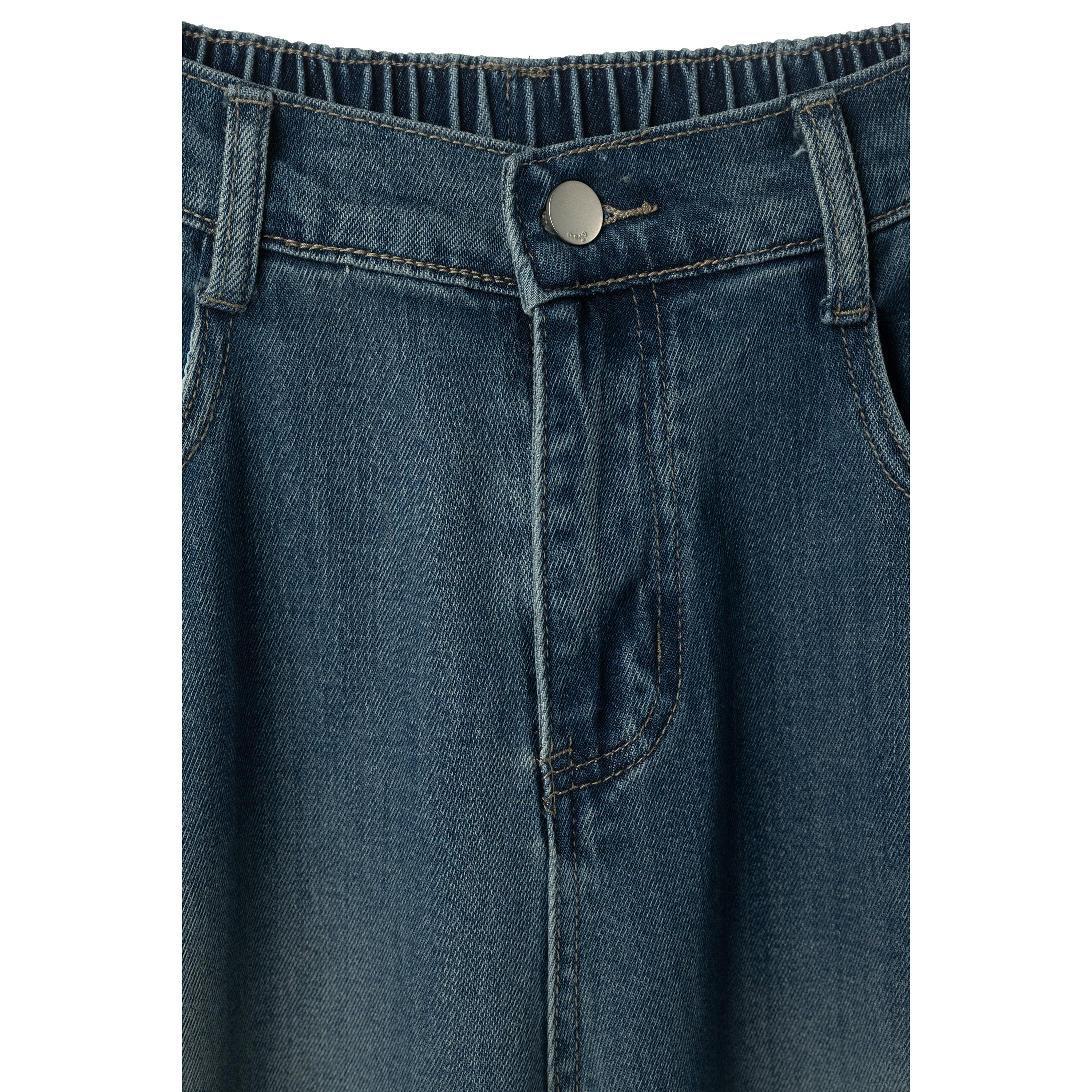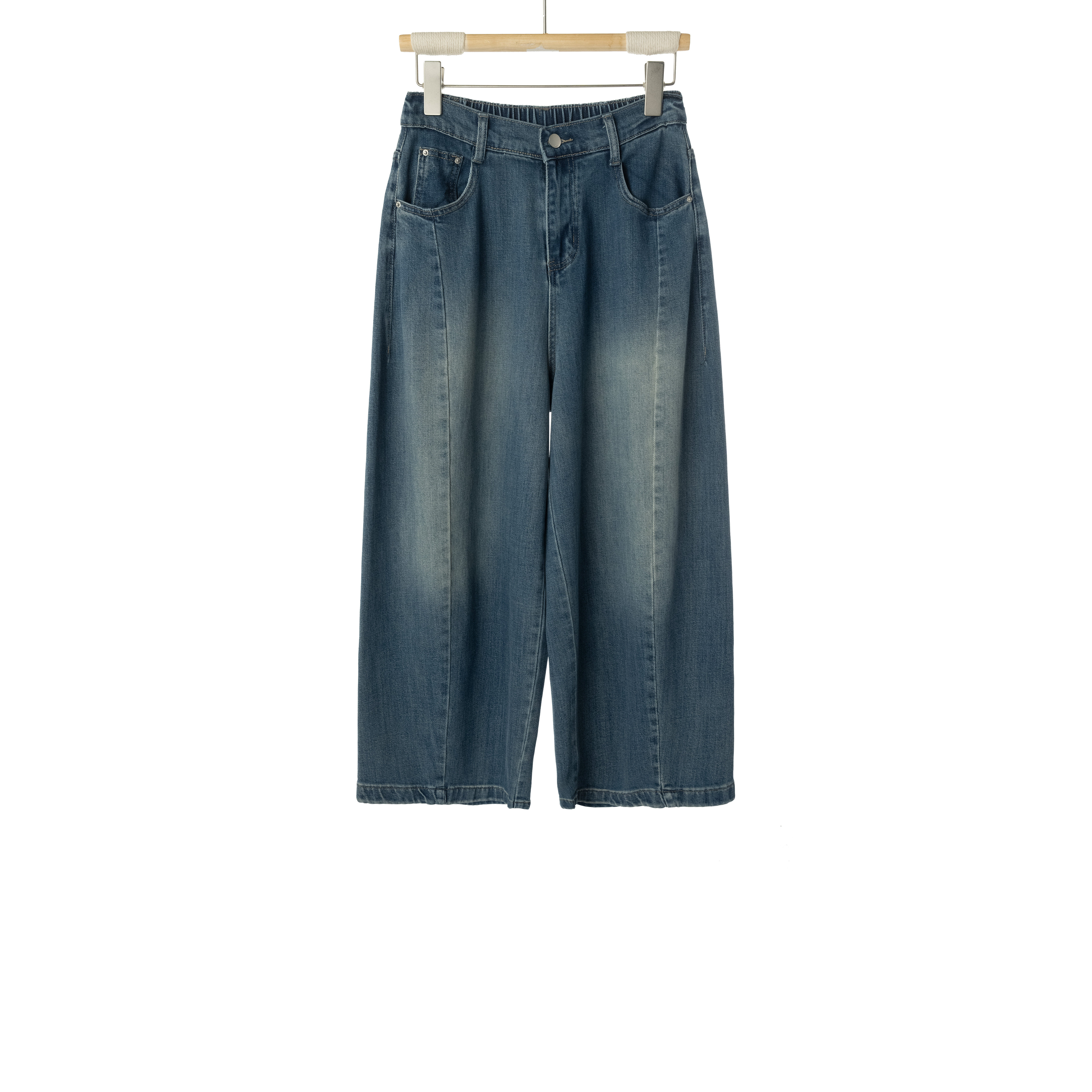 女宽松松紧腰百搭 复古水洗阔腿牛仔裤 半熟夏天