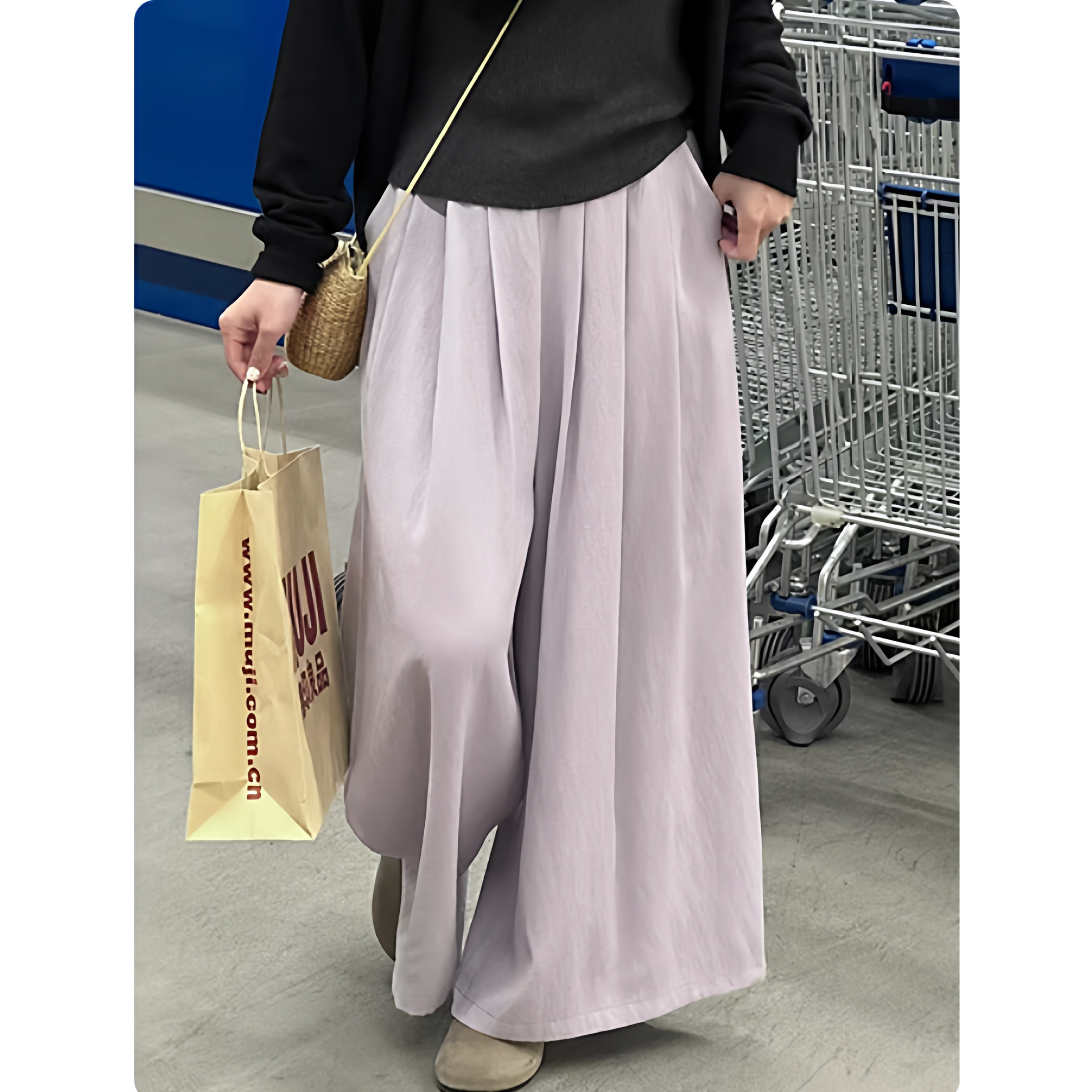 大码 紫色棉麻裙裤 冰丝亚麻阔腿裤 裙春季 韩婷l春季 九分休闲裤 新款