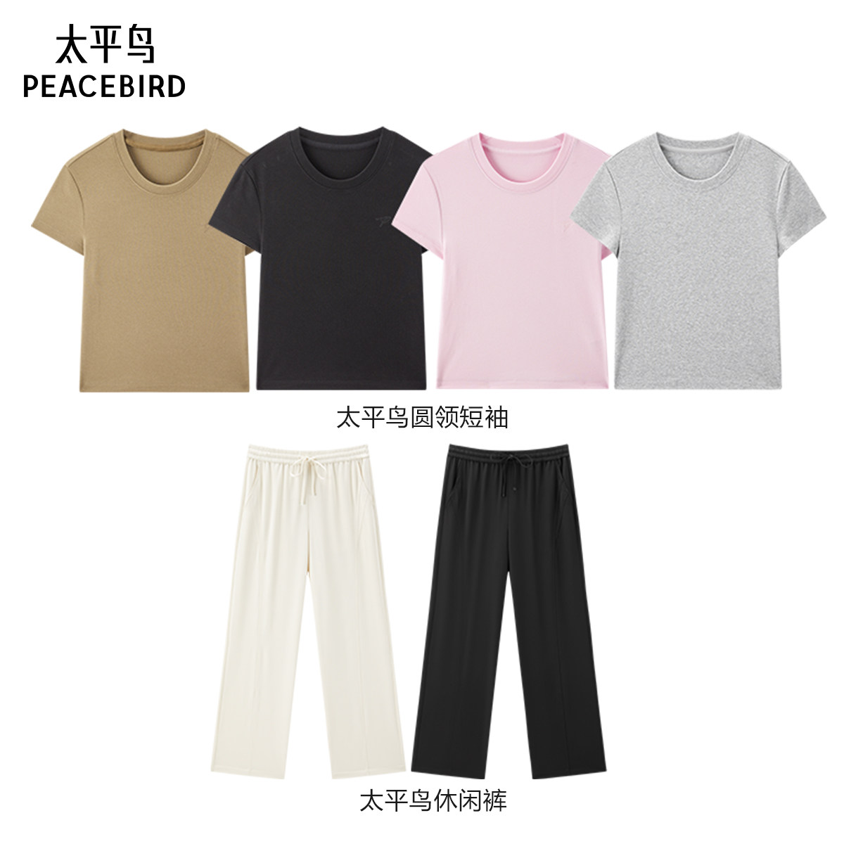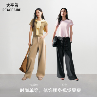 简约短袖 太平鸟高腰阔腿直筒休闲裤 T恤 达播专属