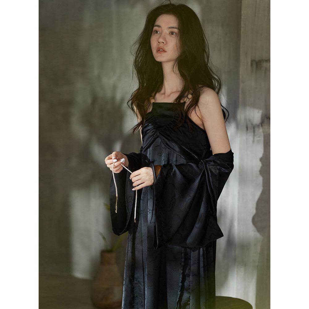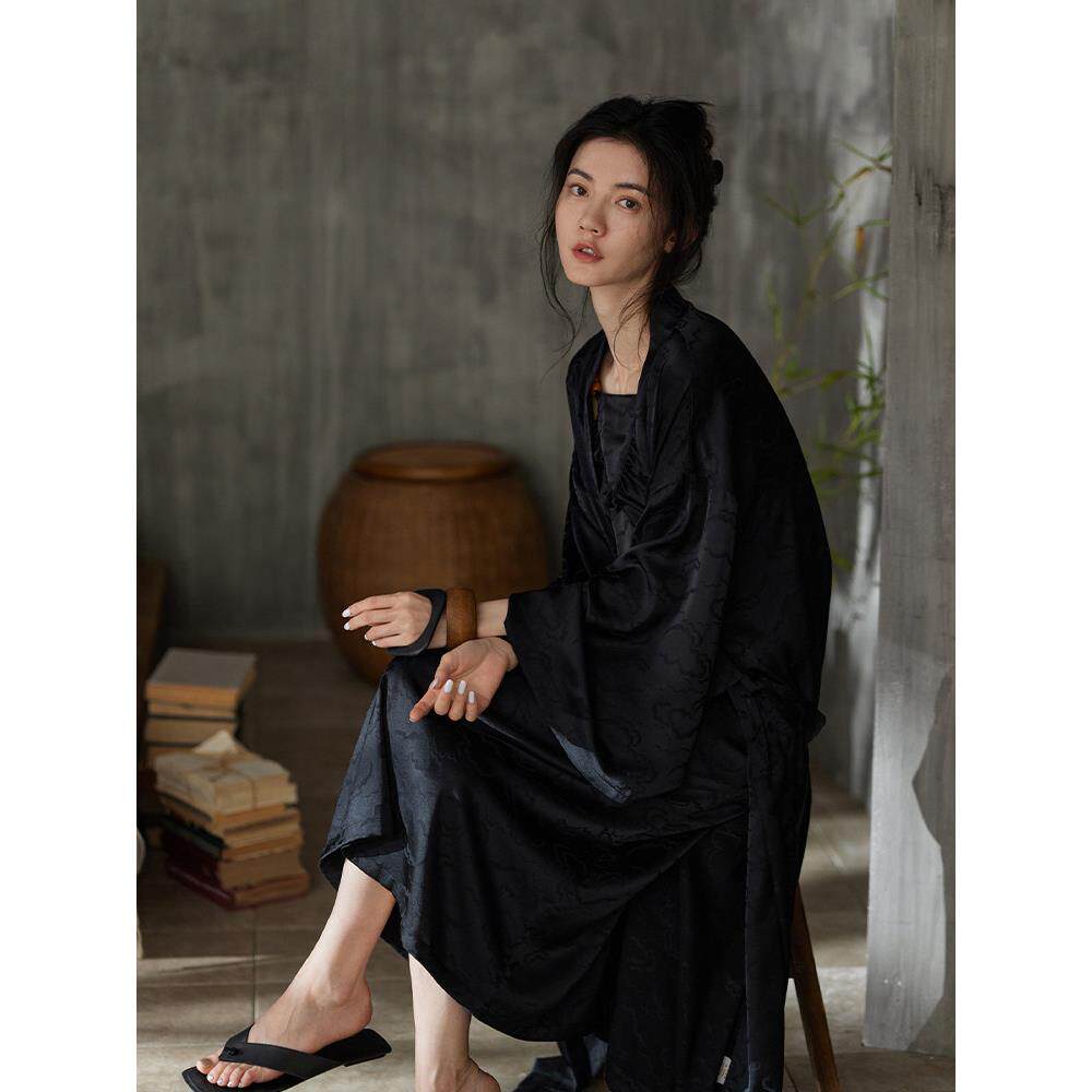 晨衣浴袍新薄睡衣套装 春夏同语女式 长袖 睡衣女式 睡衣冰丝家装