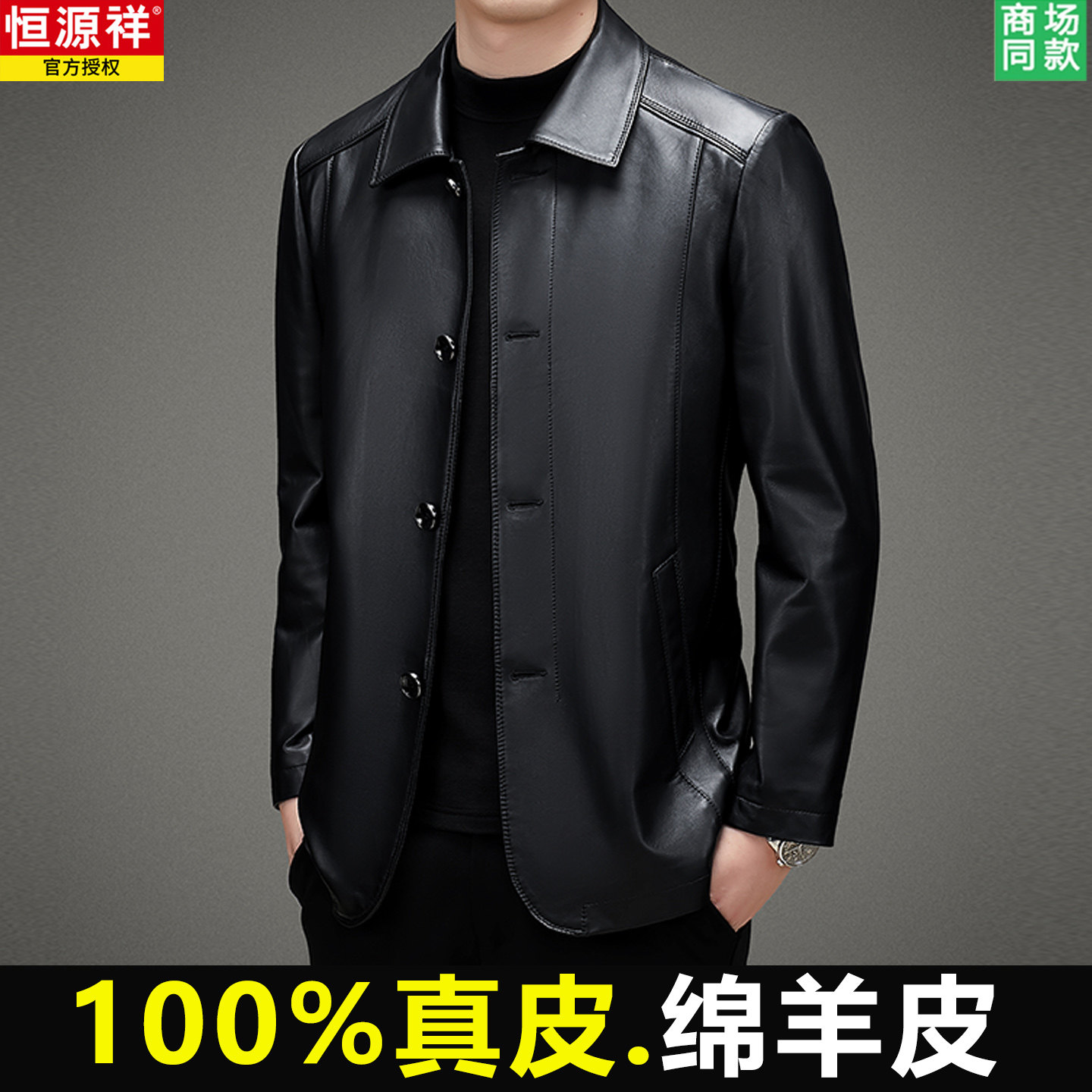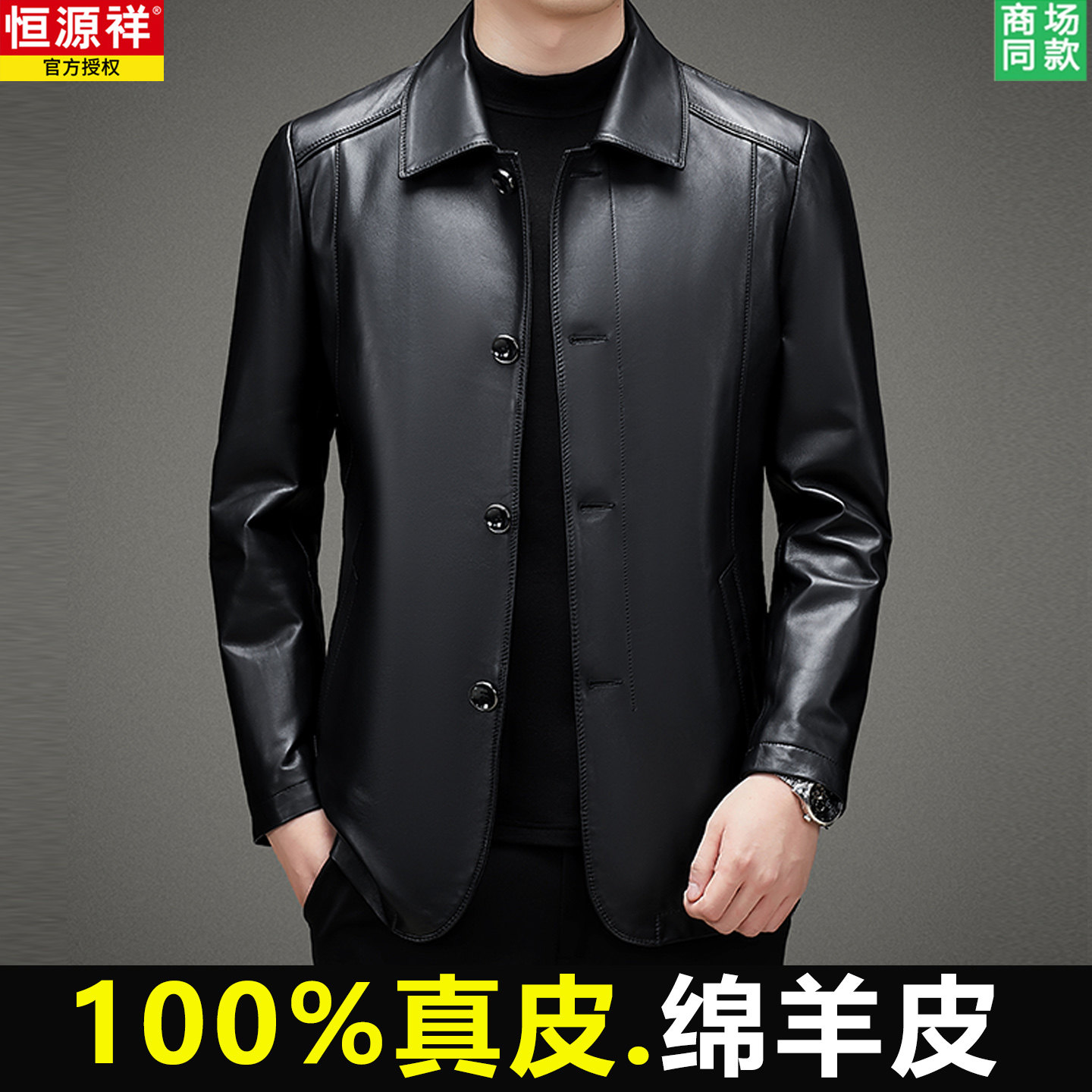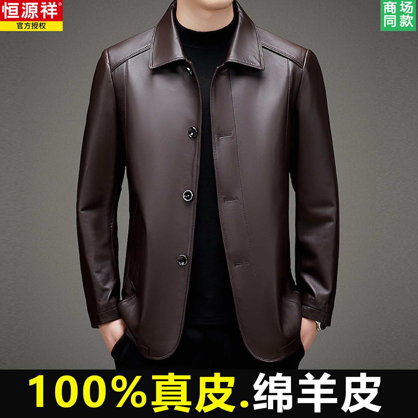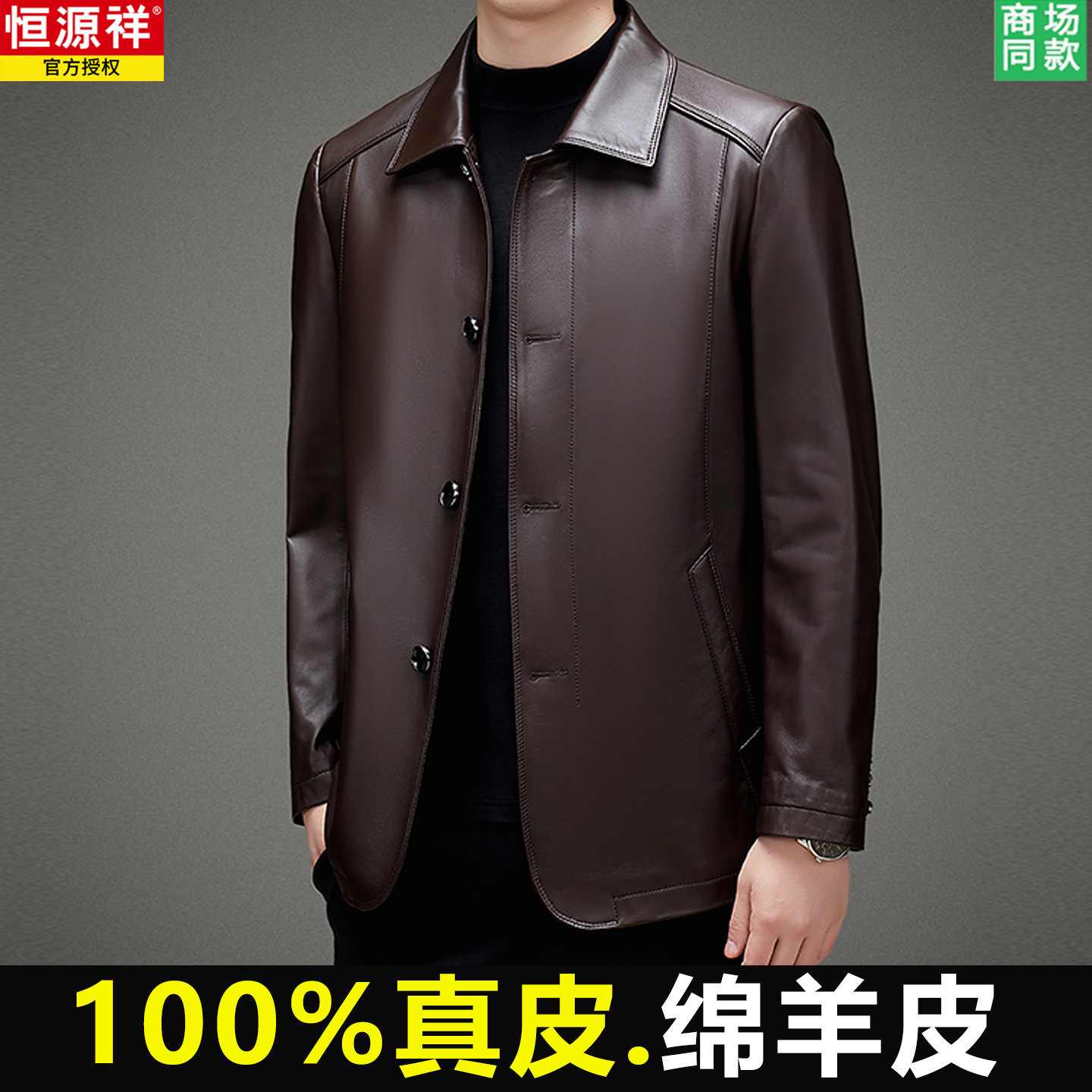 绵羊皮时尚 恒源祥男士 皮夹克爸爸装 新款 休闲翻领外套 皮衣真皮春季