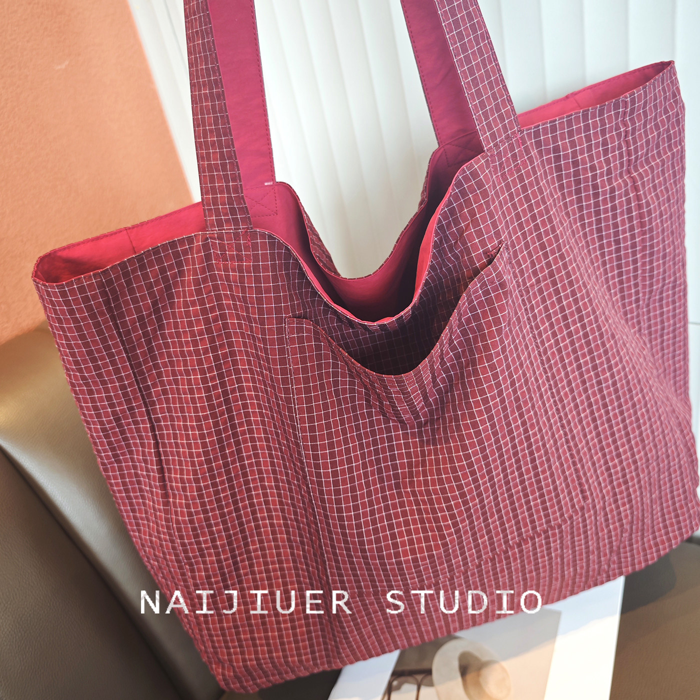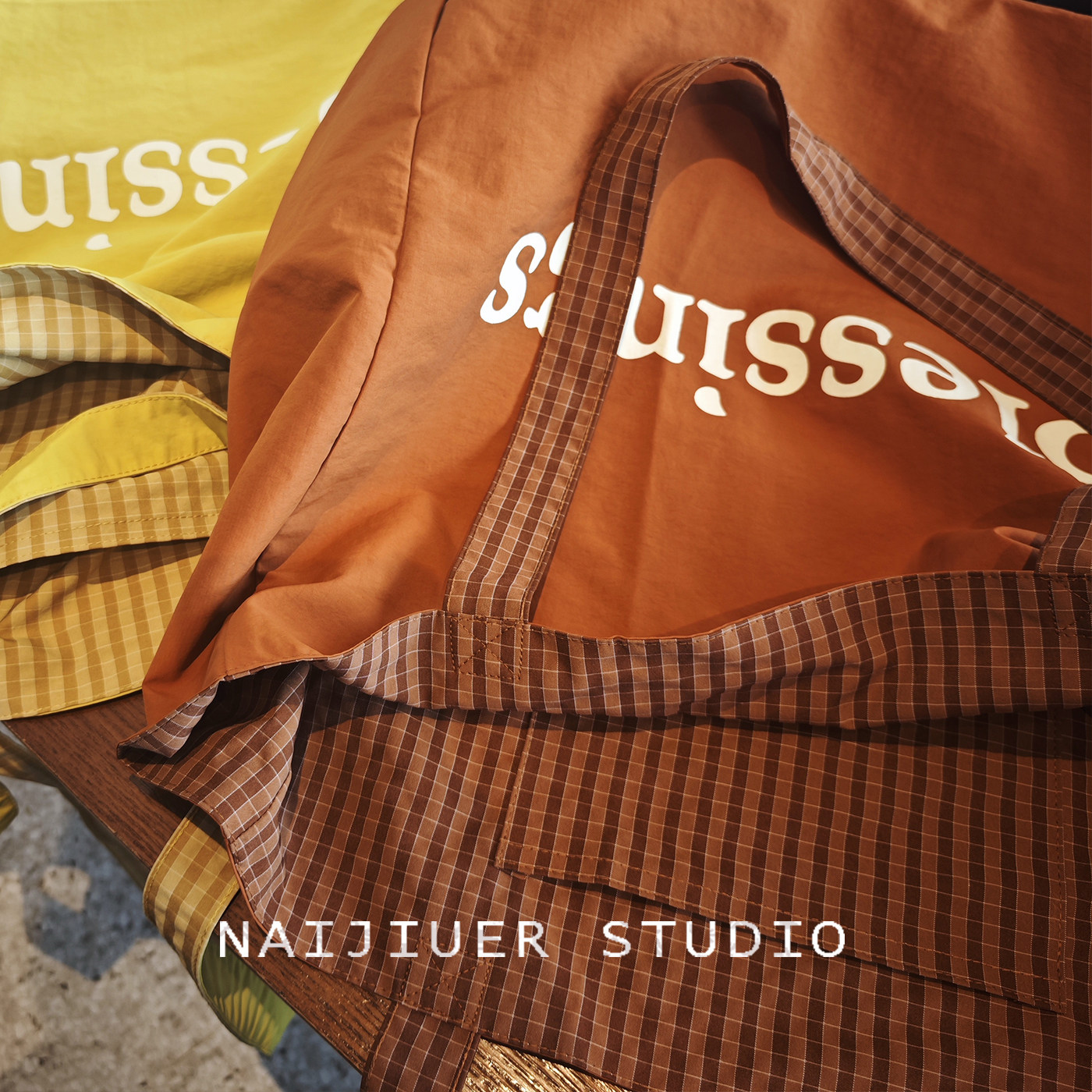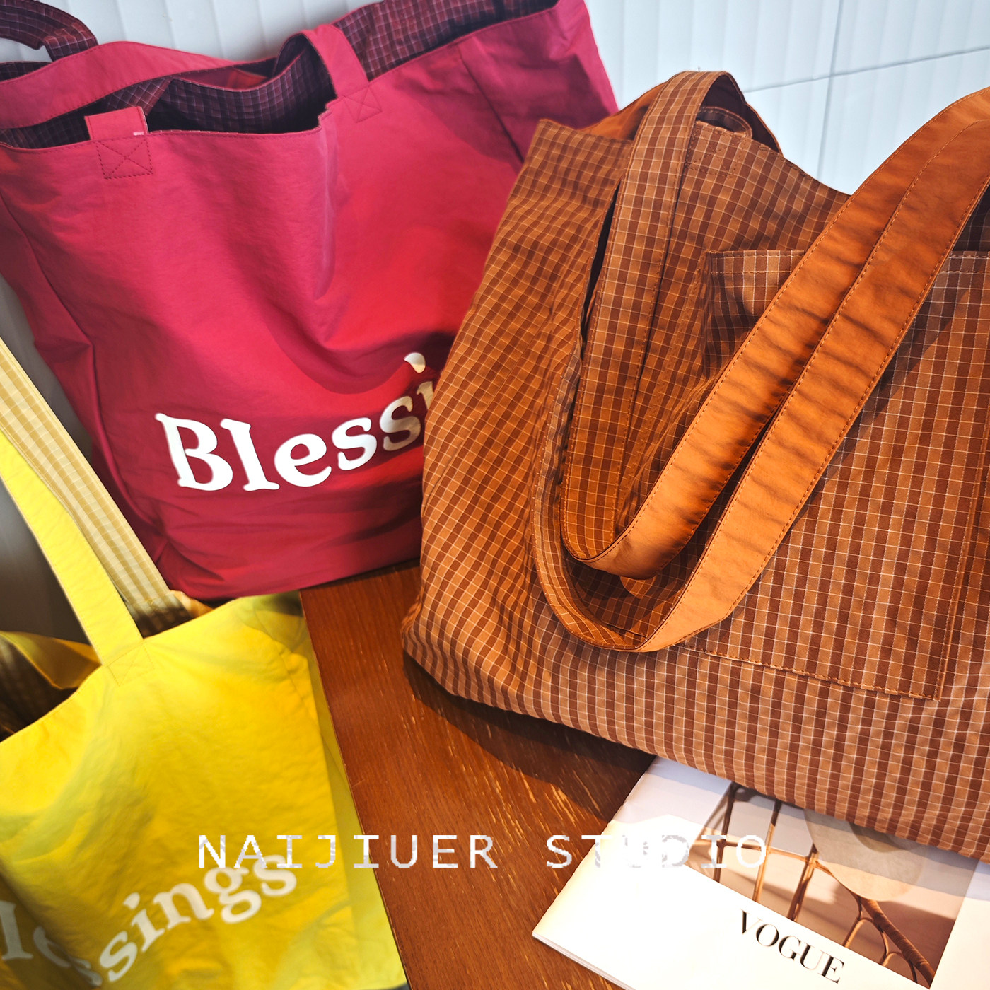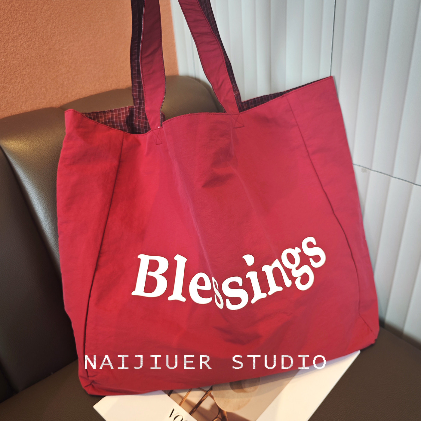 春夏日韩格纹双面可用帆布包包女单肩手提托特包大容量百搭休闲包