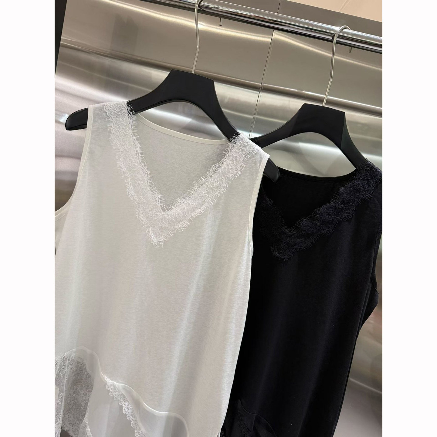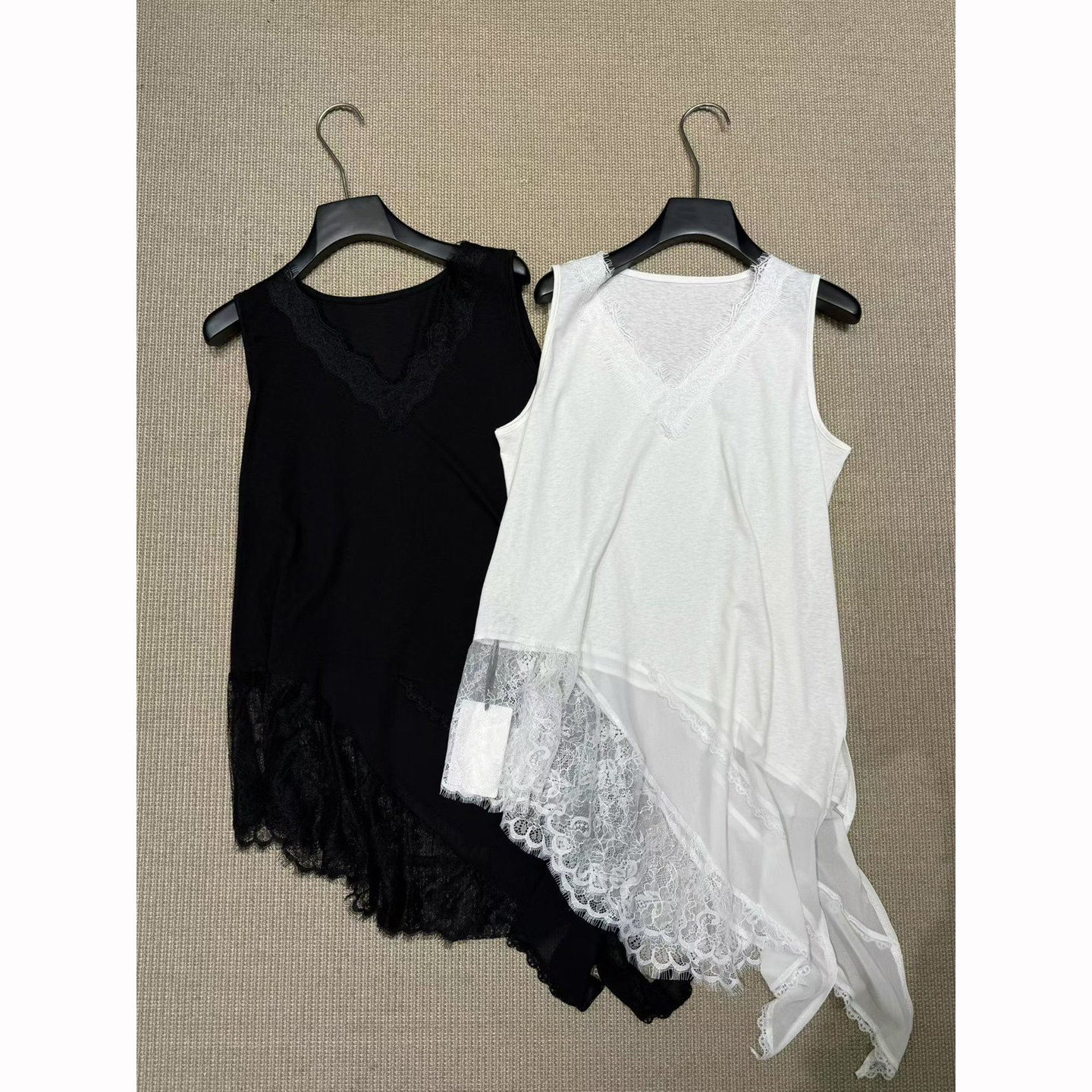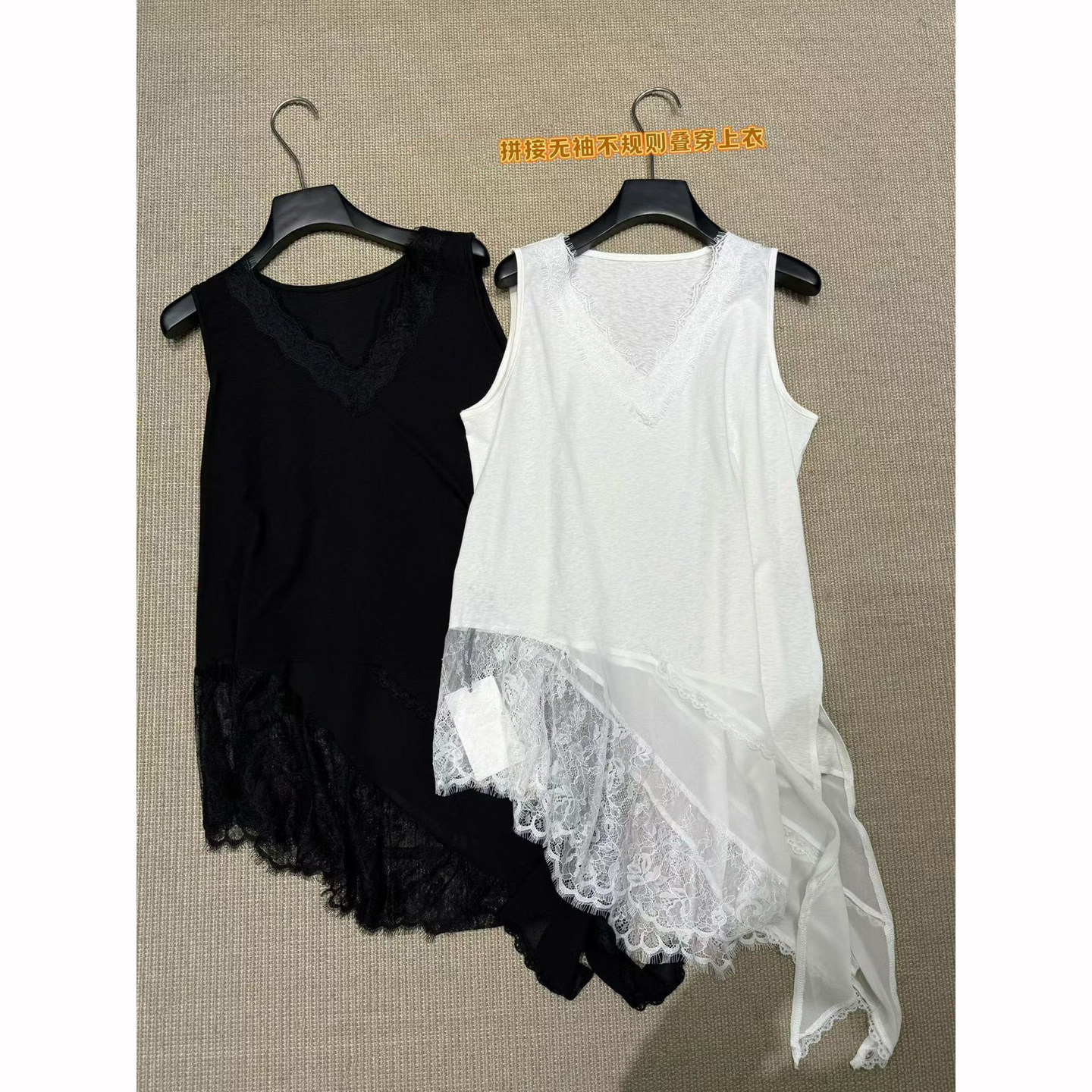 V领蕾丝边不规则长背心女2026早春新款 上衣内搭潮 叠穿无袖