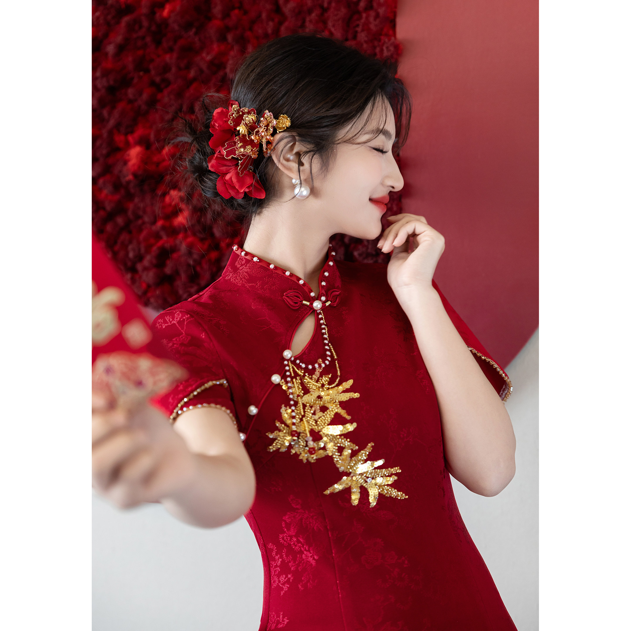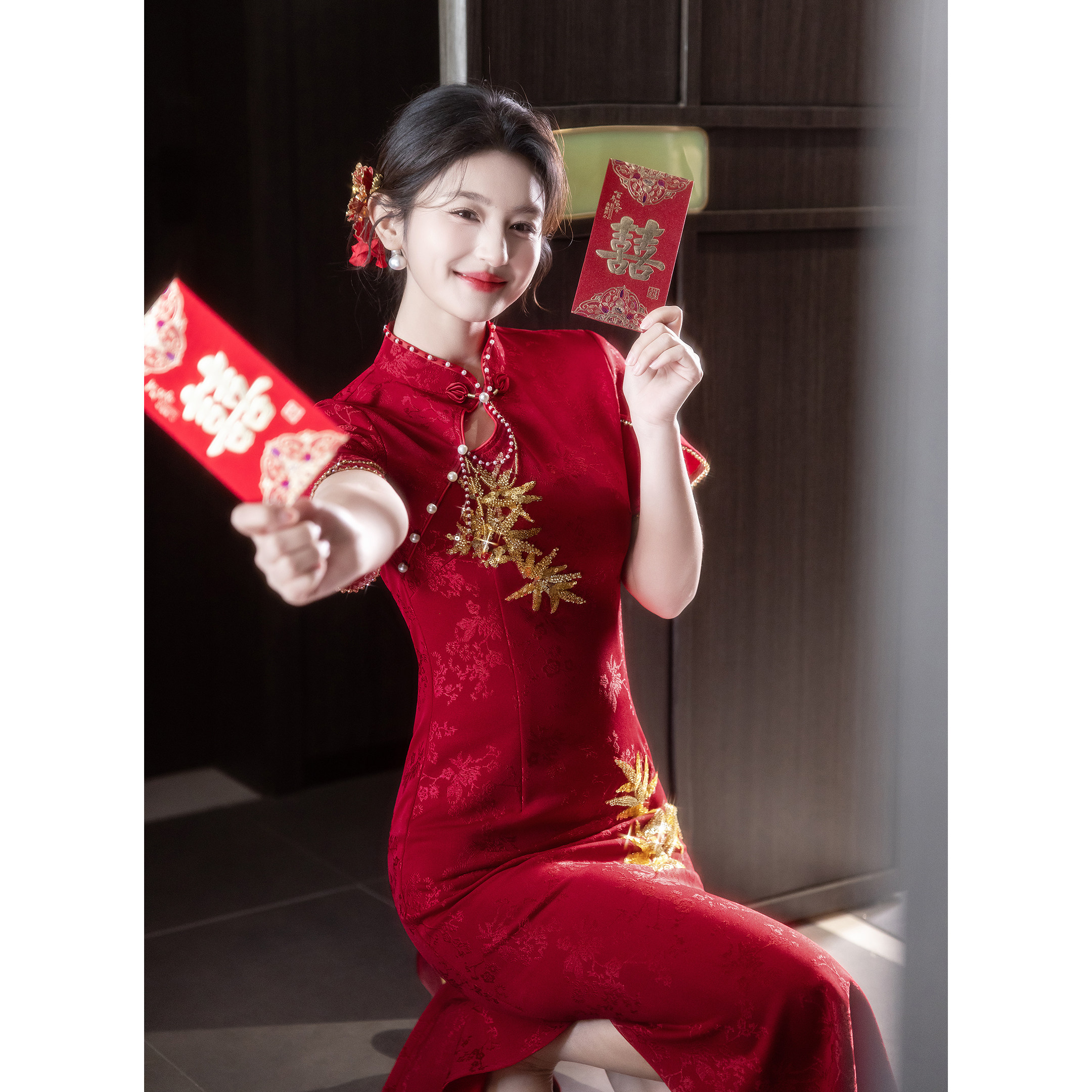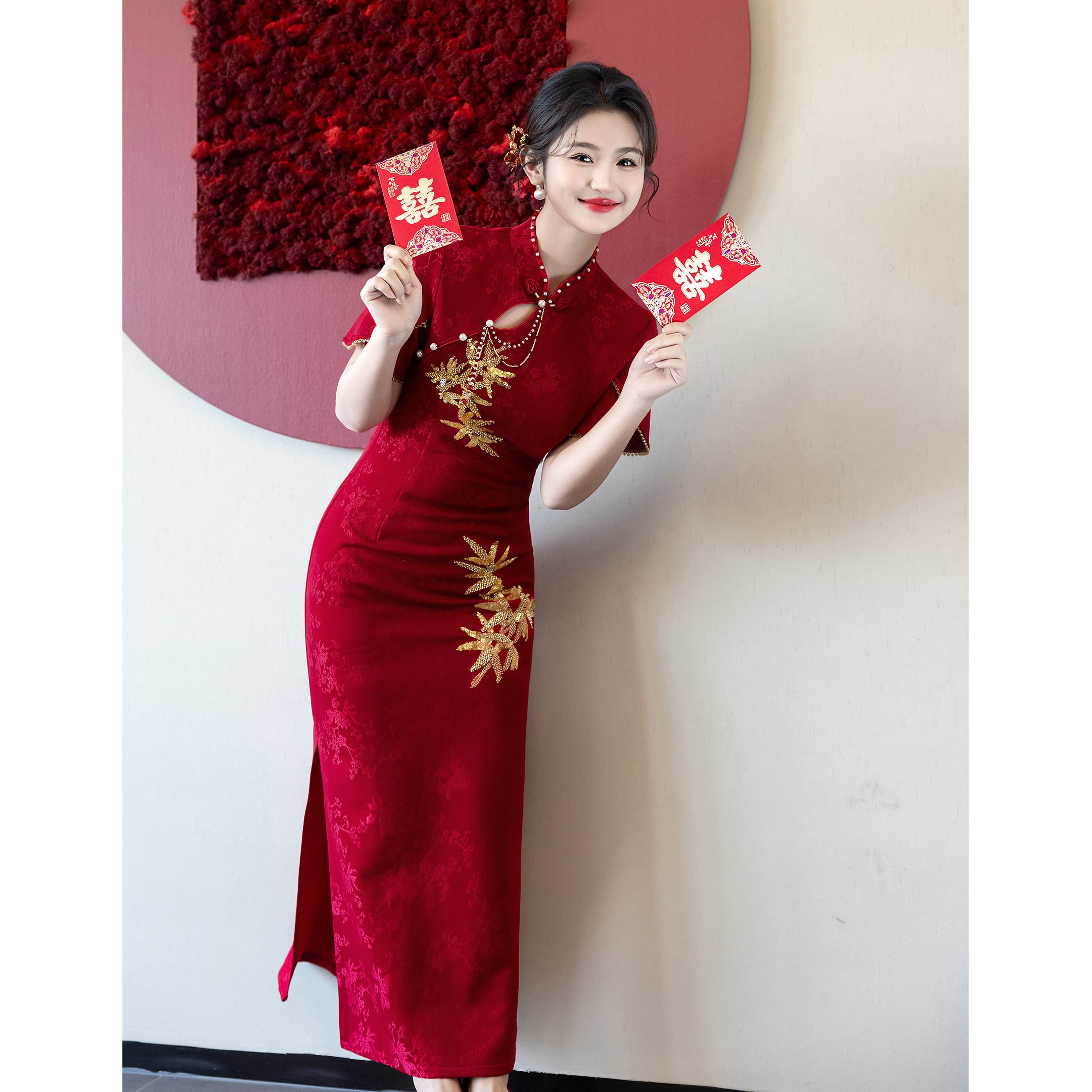 长款 红色旗袍敬酒服新娘2026新款 新中式 订婚礼服结婚回门便装 夏季