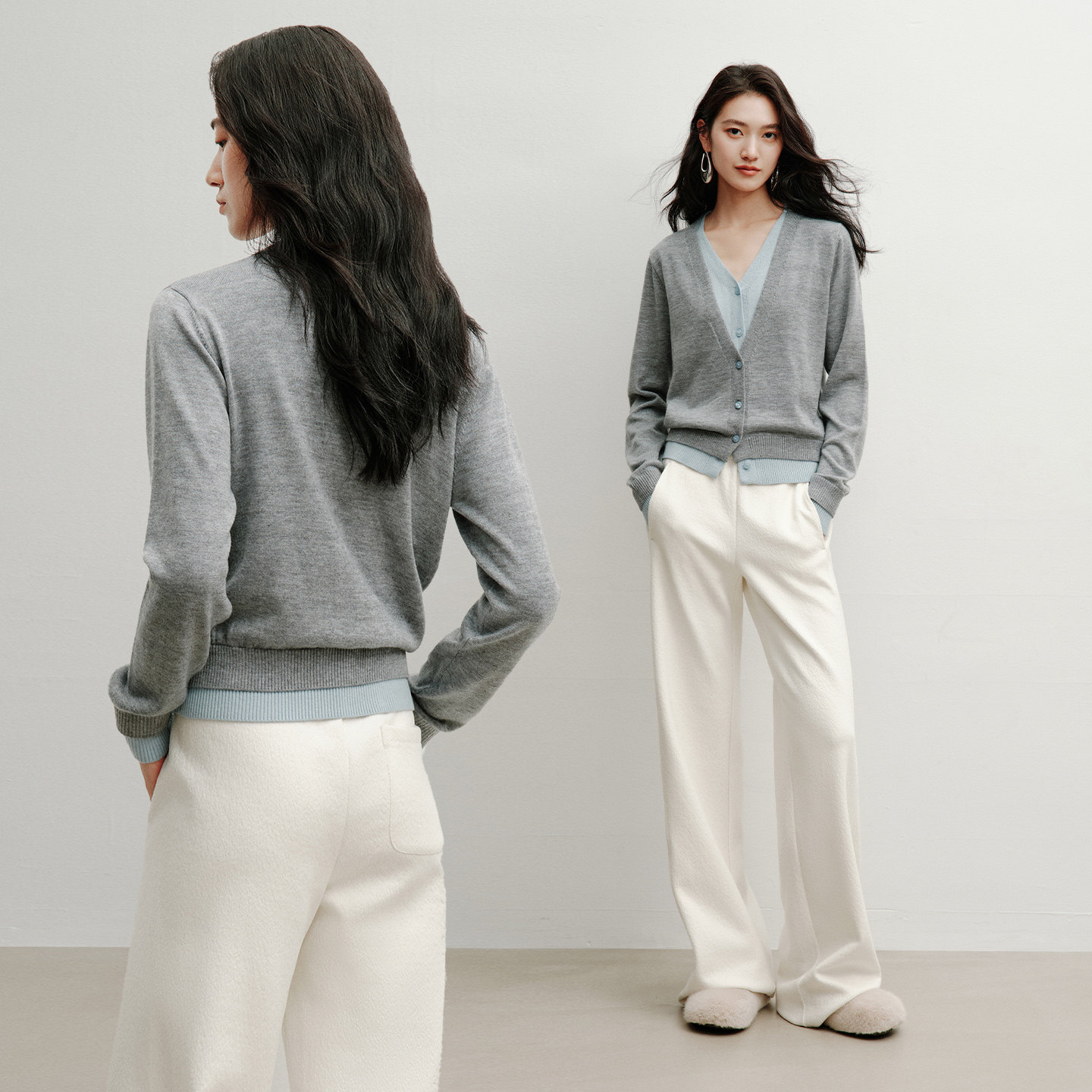 韩系时尚 新款 羊毛上衣 女2025年秋冬装 衣香丽影咖色假两件针织开衫
