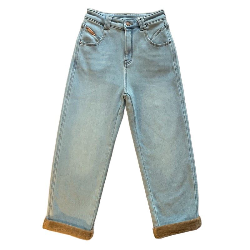 保暖加绒宽松小个子显瘦阔腿长裤 定染灰调奥利绒直筒牛仔裤 女冬季
