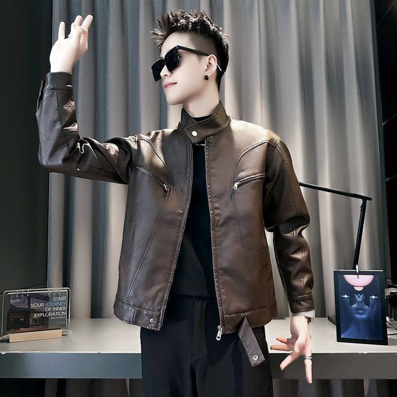 帅气修身 男士 皮夹克韩版 潮流高级男冬款 立领休闲皮衣简约大气时尚