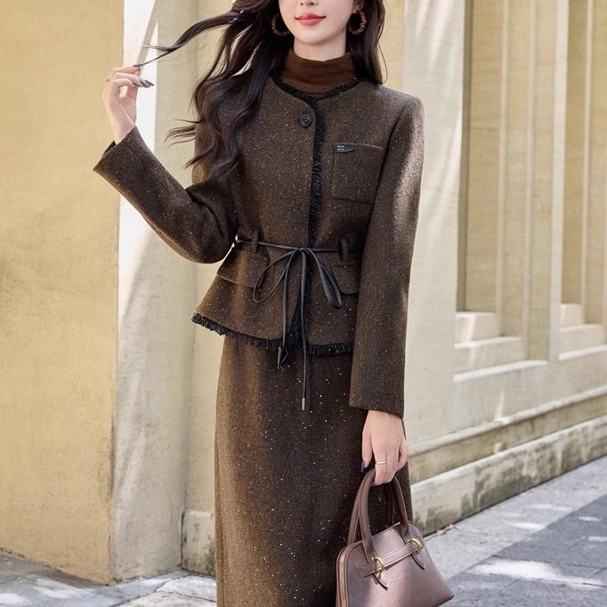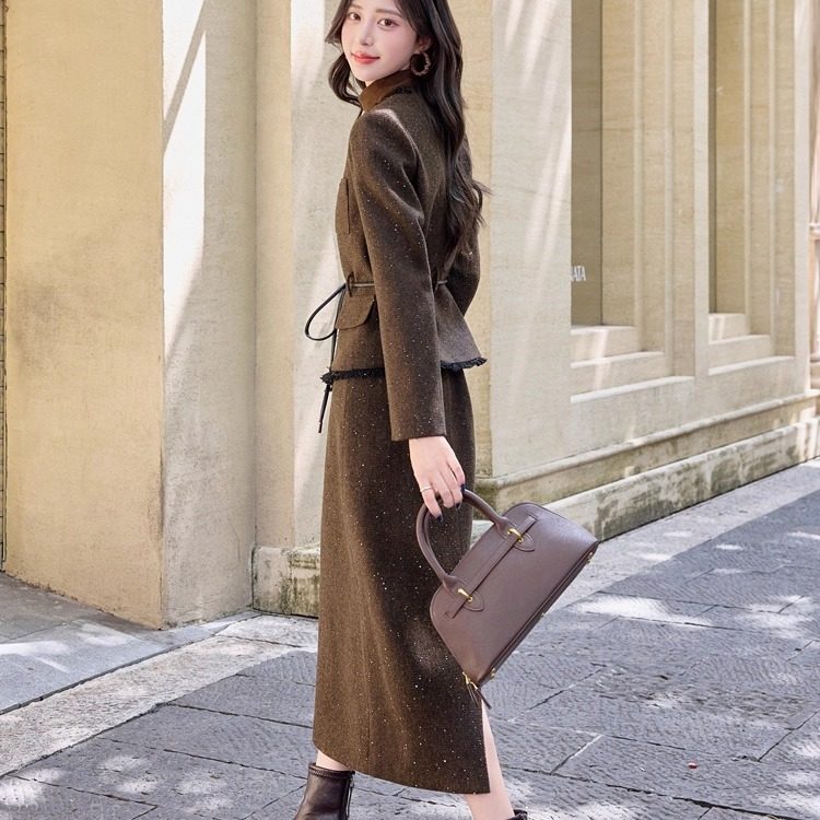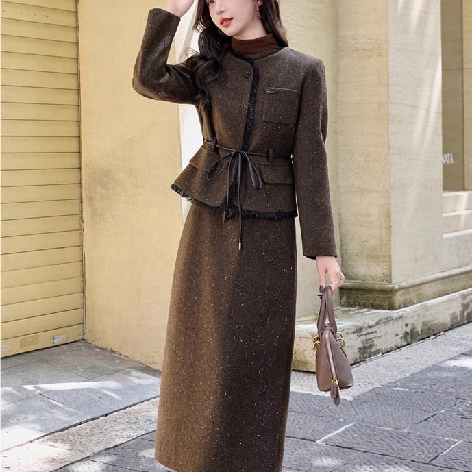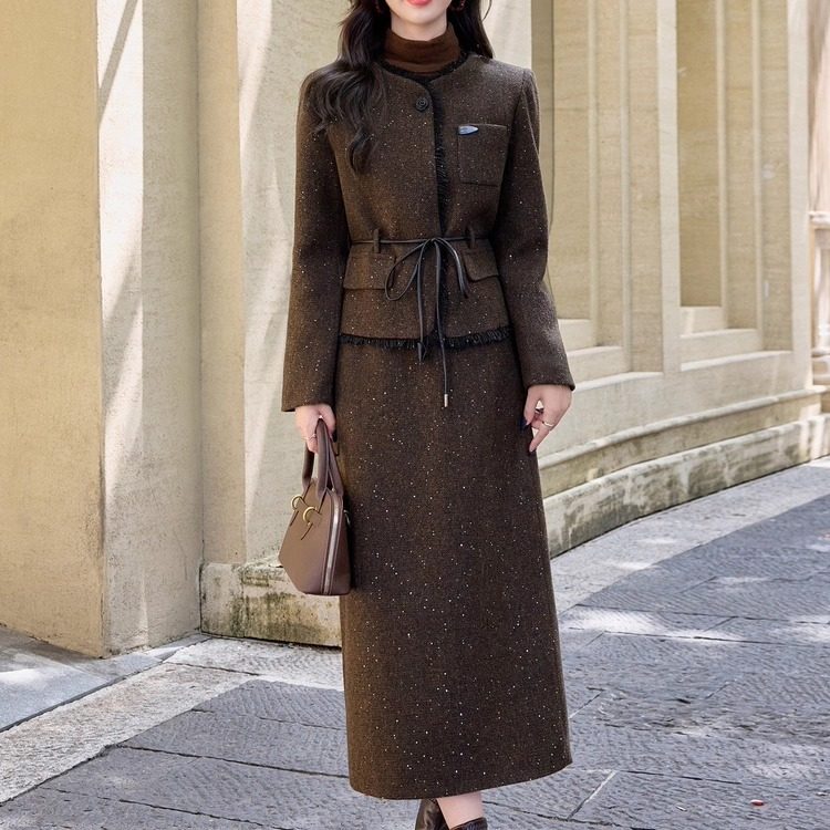 深圳南油欧货两件套羊毛套裙秋冬小香风羊毛呢外套半身裙时尚 套装