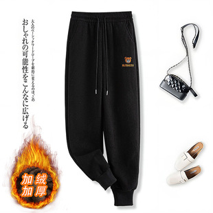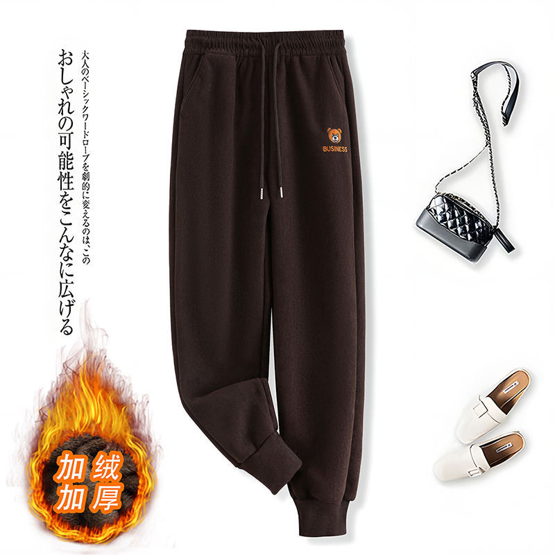 哈伦裤 休闲裤 时尚 加绒加厚小熊高腰显瘦卫裤 潮束脚 女2025秋冬新款