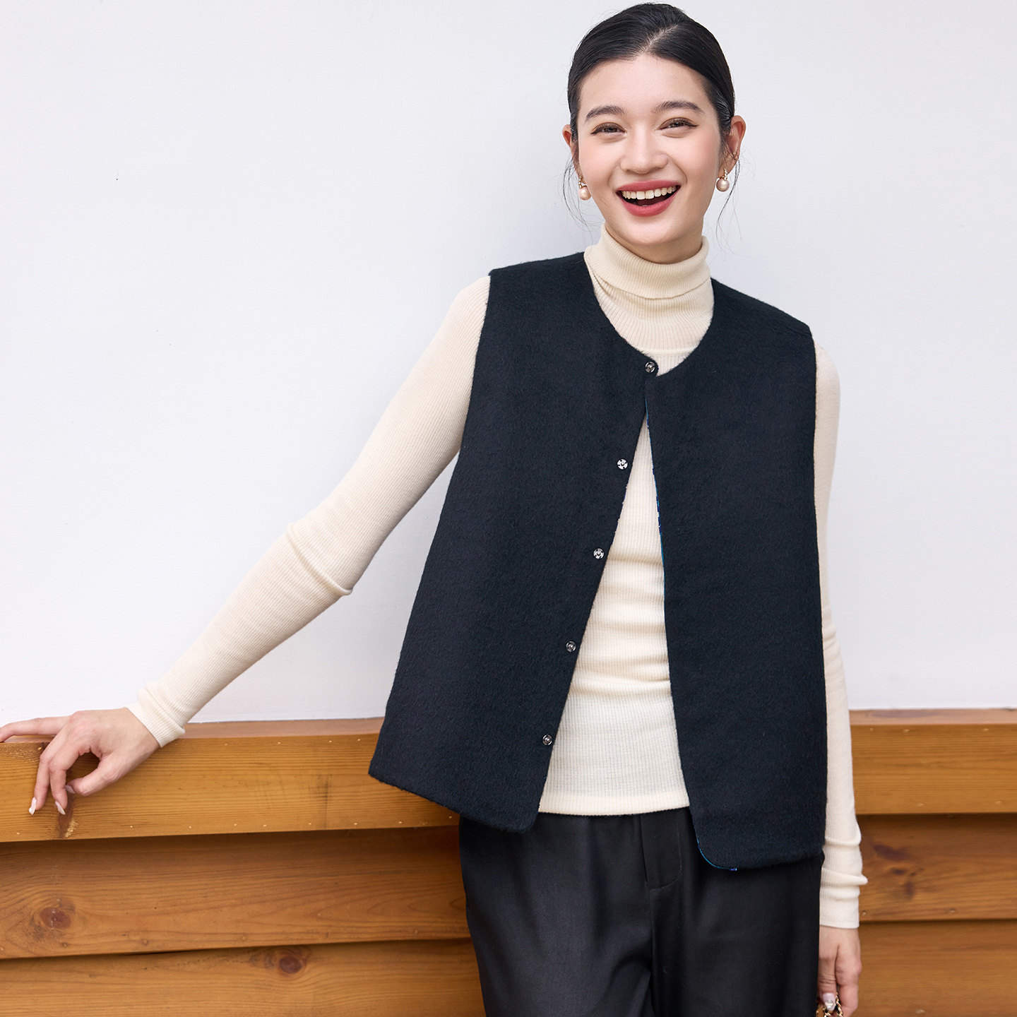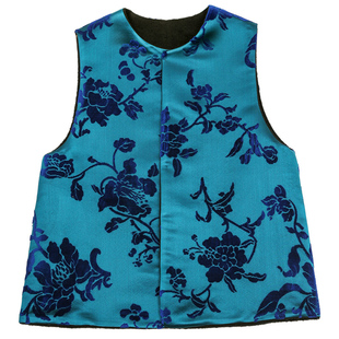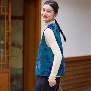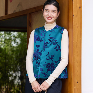 菲伊唐冬中式 马夹女上衣 改良女真丝漳绒两面穿立领复古羊毛呢唐装