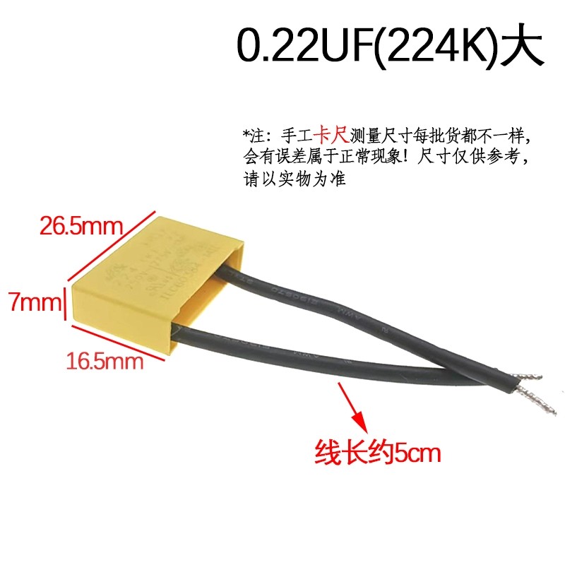 电动工具消火花电容275V带线 X2安规电容滤波电容 0.22UF=224K