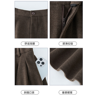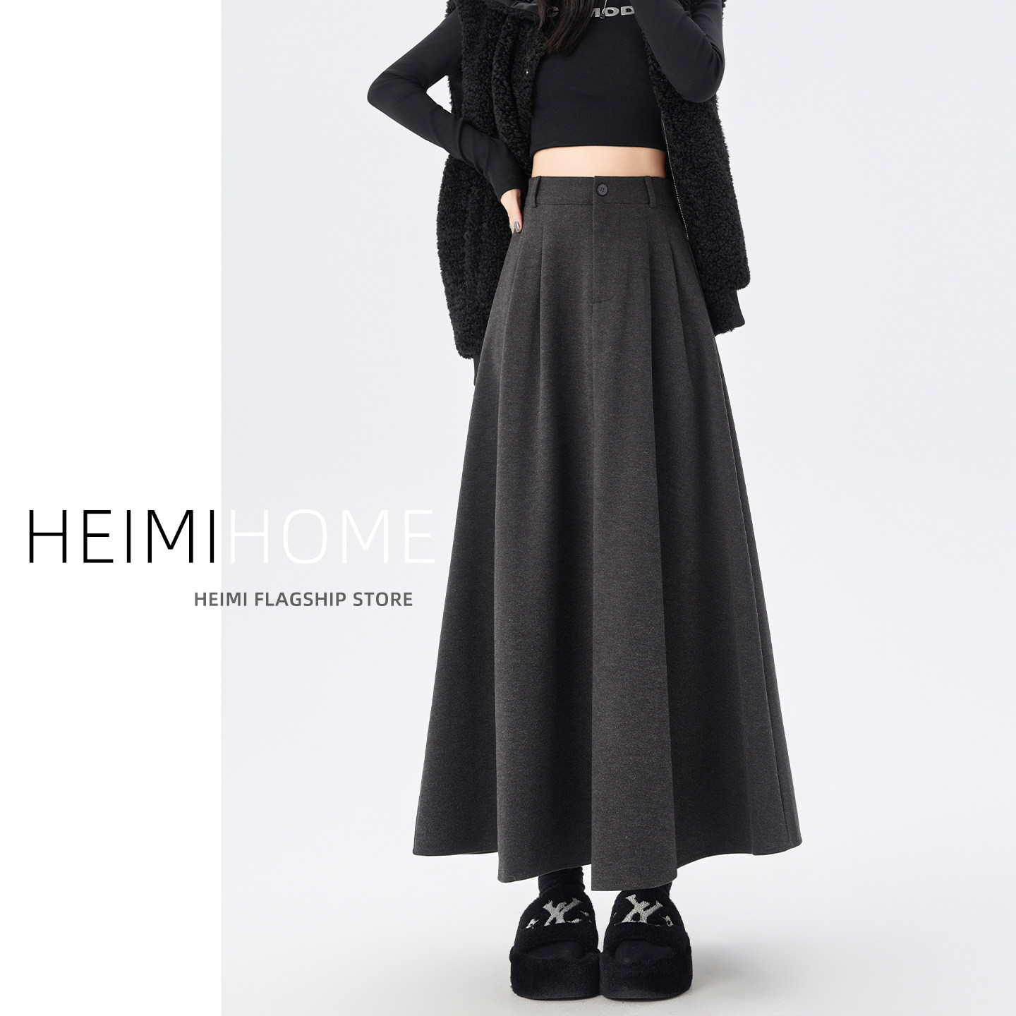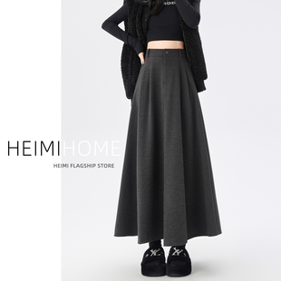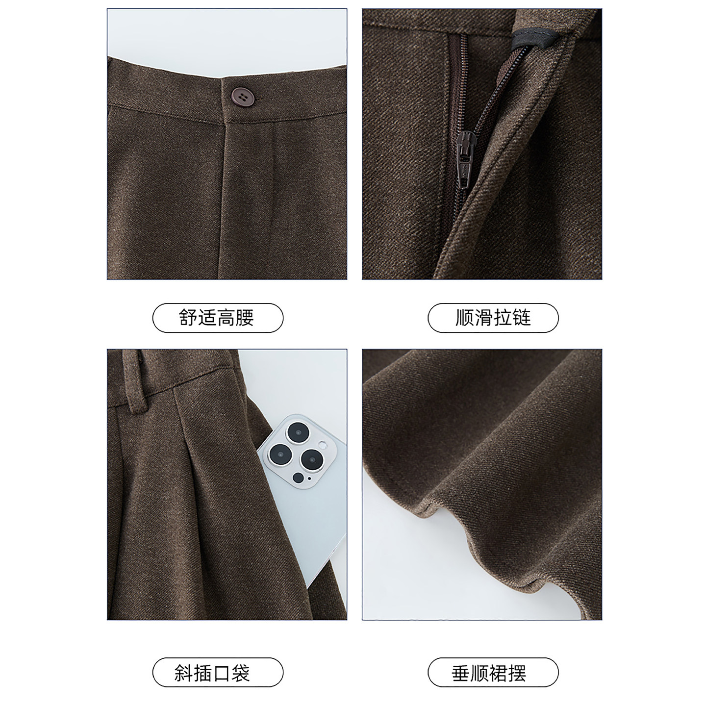 咖色赫本风半身长裙女2025秋冬季 加厚a字百褶裙 高腰毛呢裙中长款