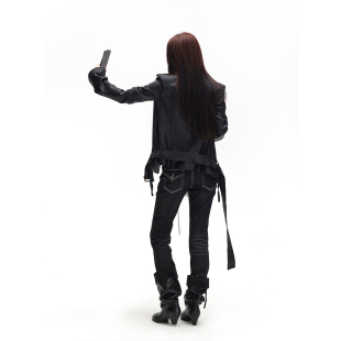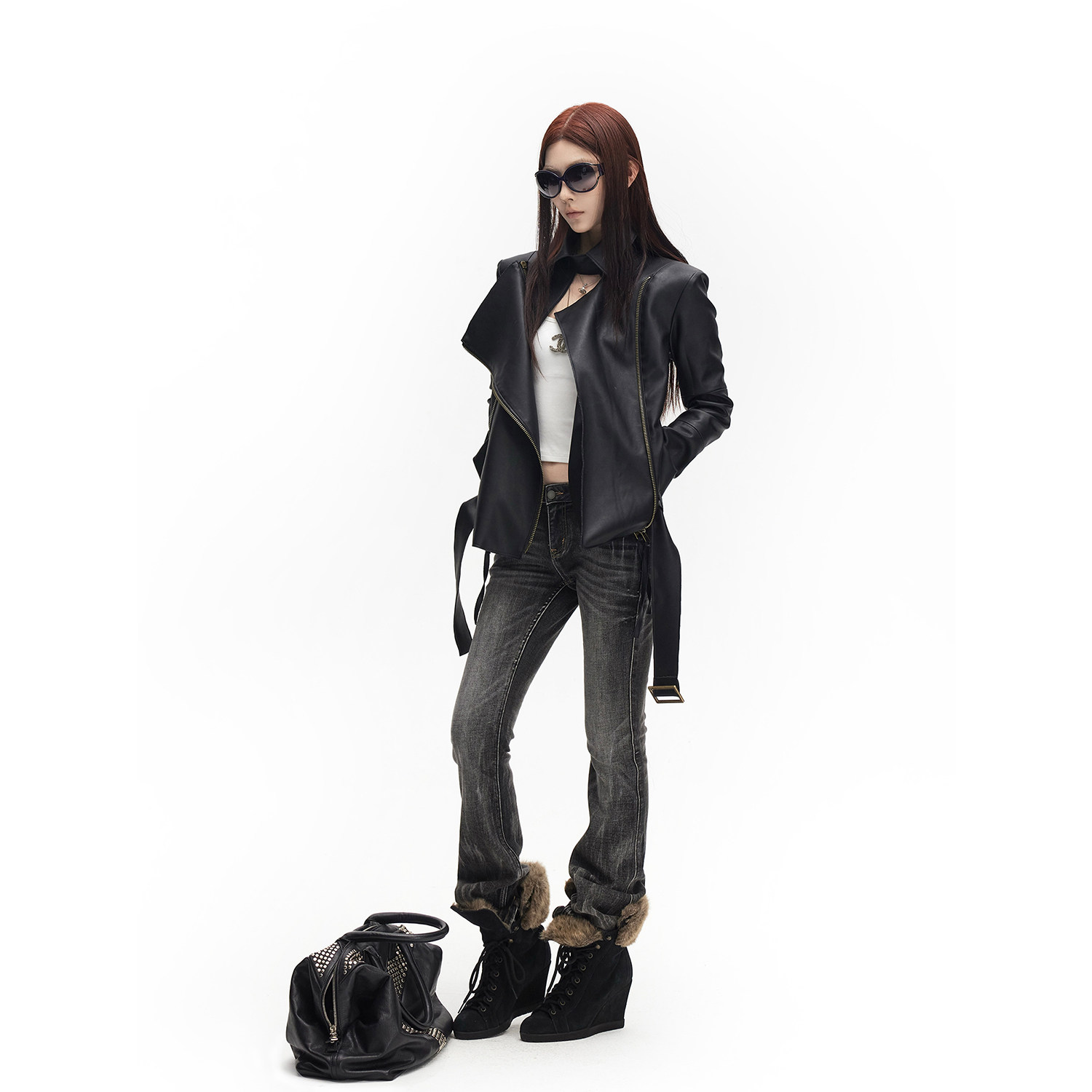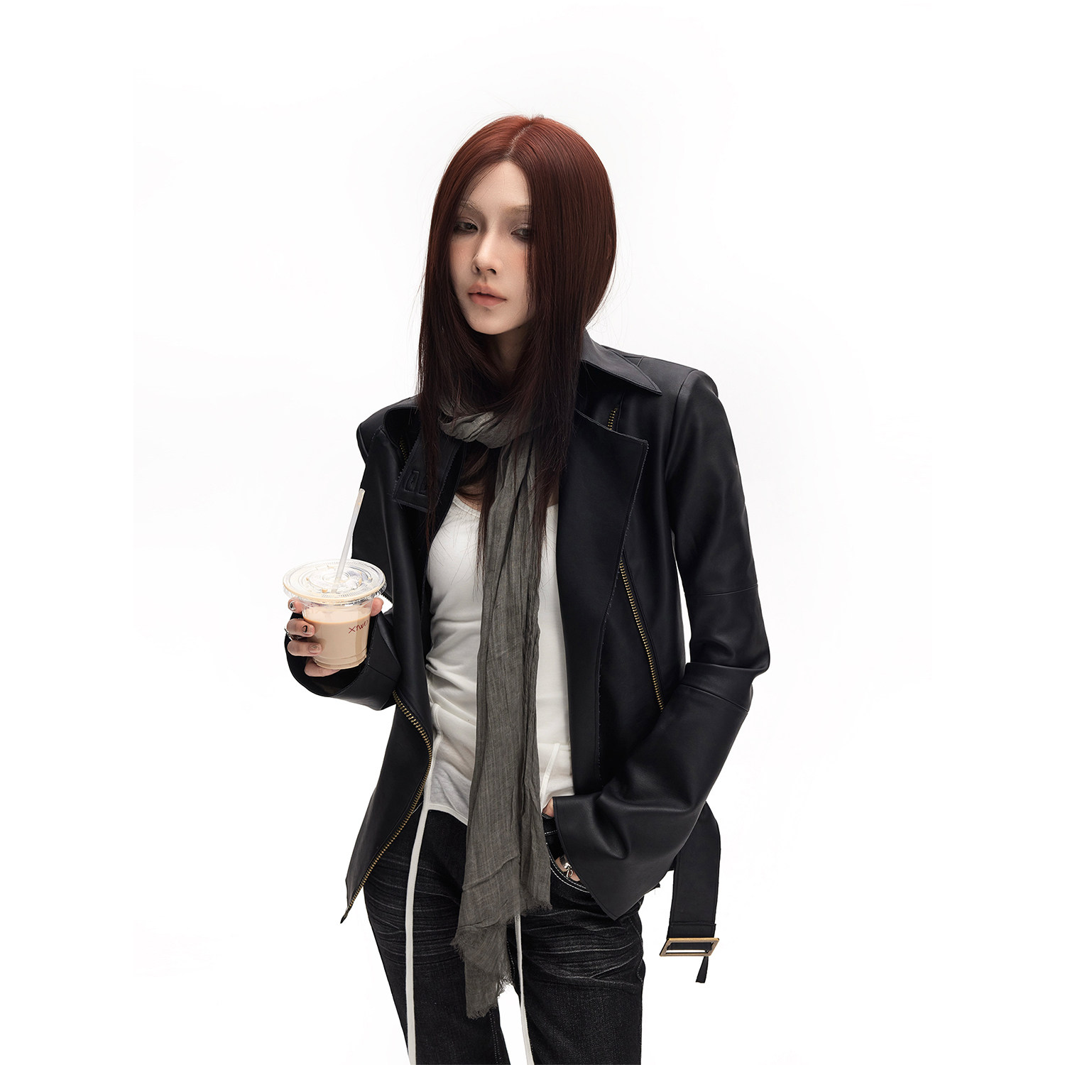 落肩时尚 NanaJacqueline翻领夹克皮衣新款 短外套女 孟子义同款