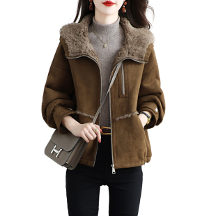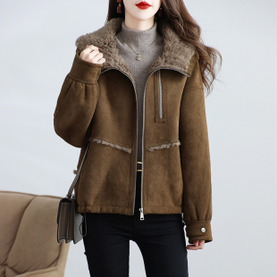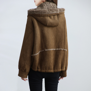 2025新款 加厚拉链保暖连帽羊羔毛大衣冬 海宁颗粒绒皮草外套女短款