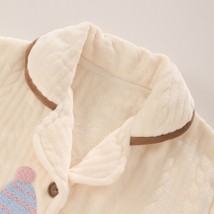 珊瑚绒保暖秋冬款 加绒加厚三层夹棉法兰绒家居服套装 冬季 睡衣男士