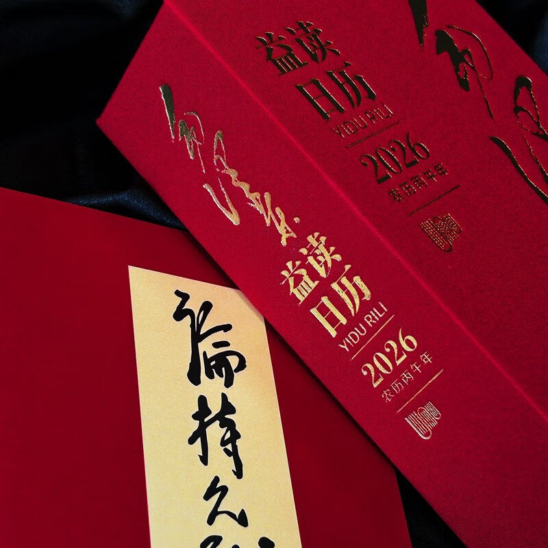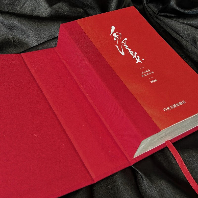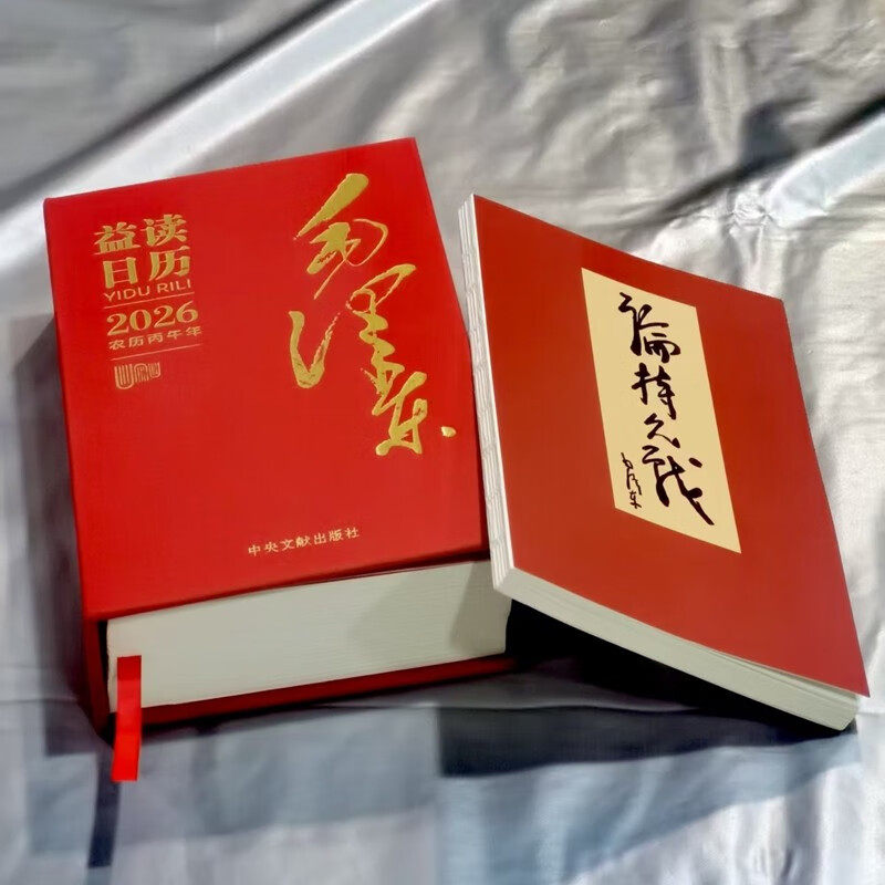 布艺刷边 中央文献 益读日历 毛书法实事求是 力戒空谈 32开本 2026日历 毛泽东 日记本马年礼品纪念 精装 赠送论持久战集章本