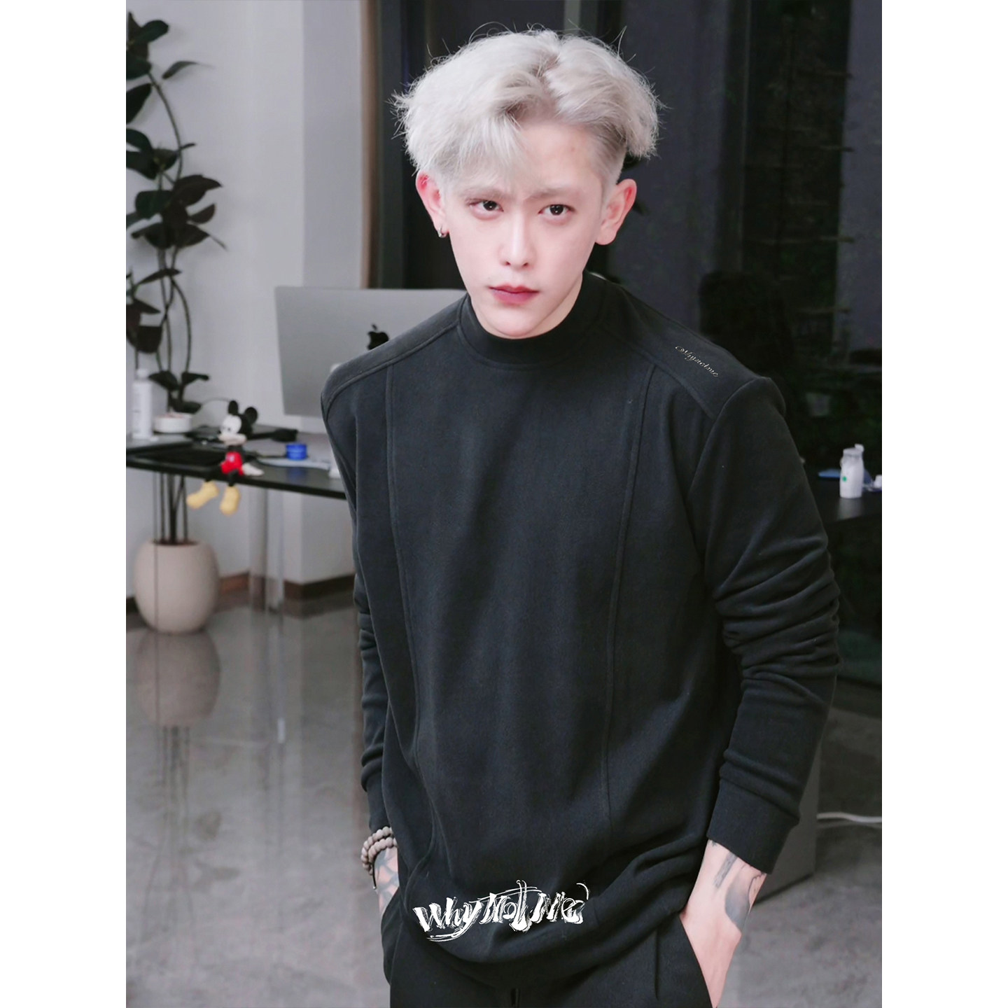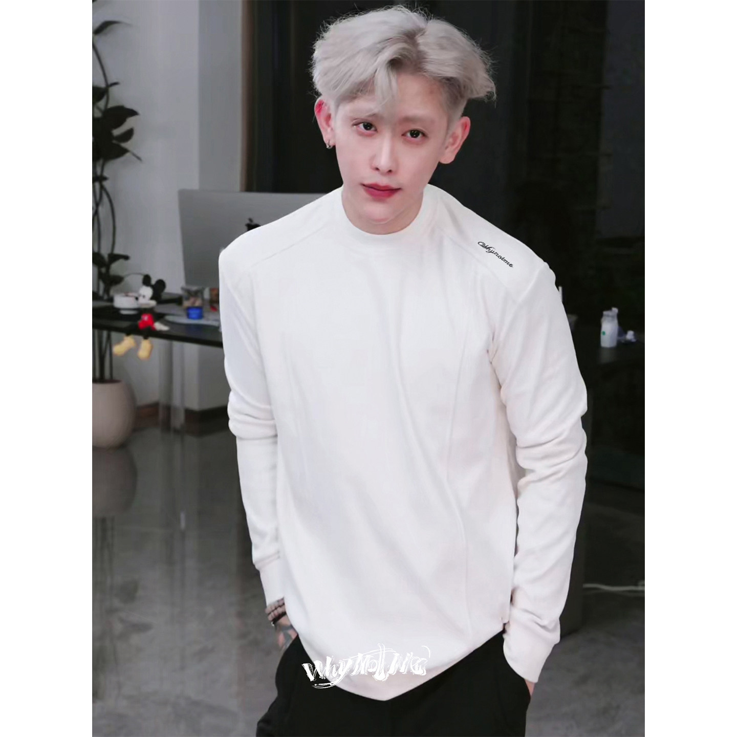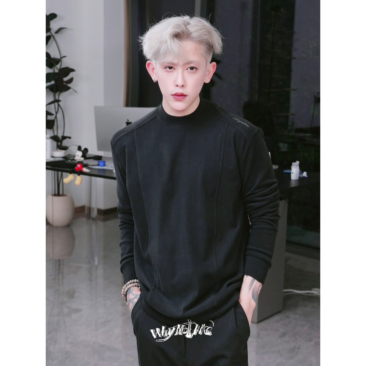 序77 圆领打底内搭男卫衣冬 重磅双面德绒正肩百搭基础纯色T恤长袖