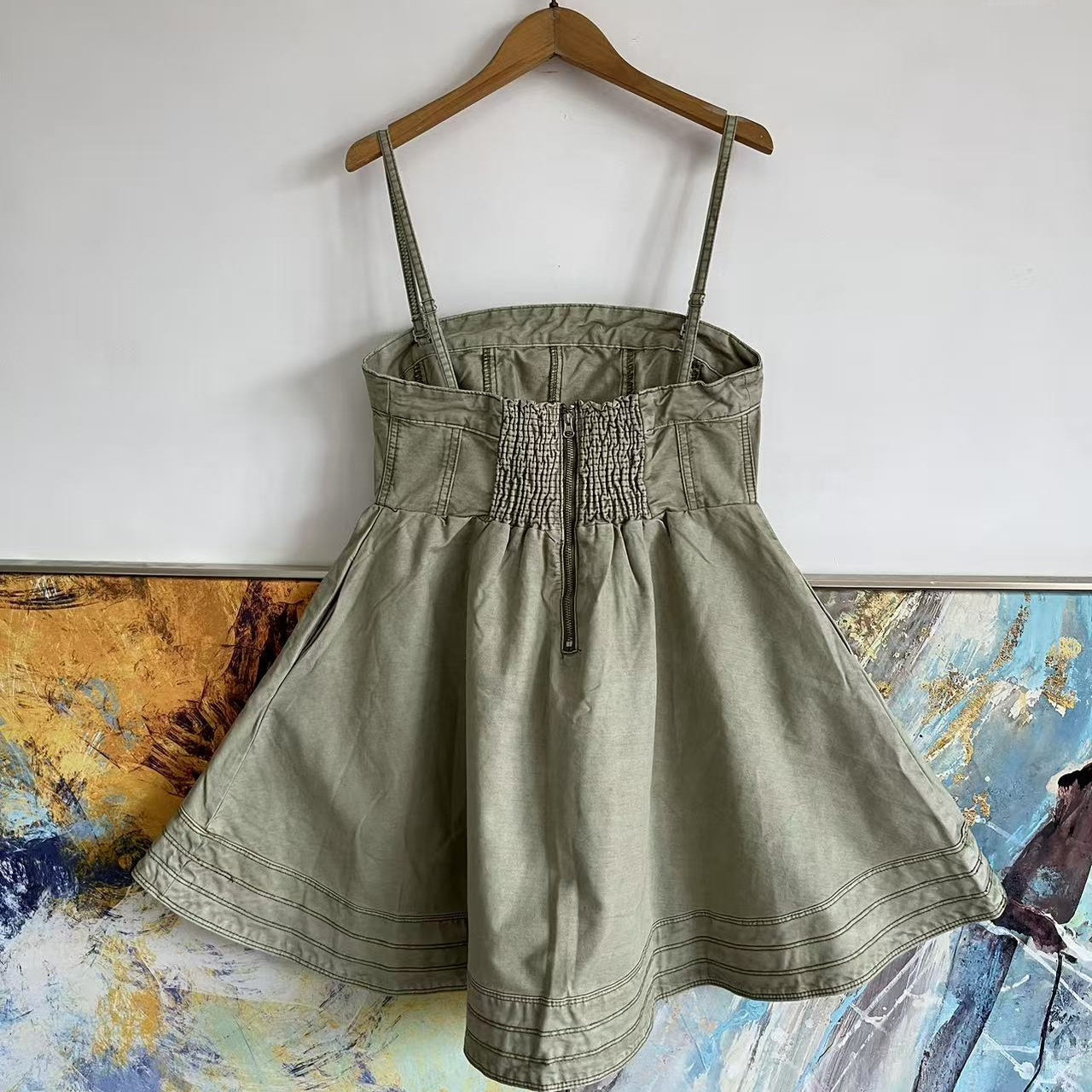 复古油污做旧做脏纯棉牛仔吊带裙 MUSE女款 微瑕特价 美潮MIOU