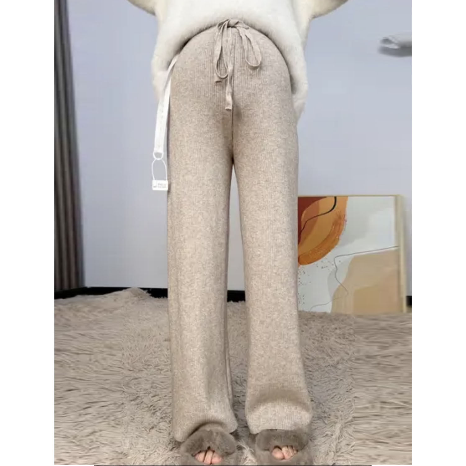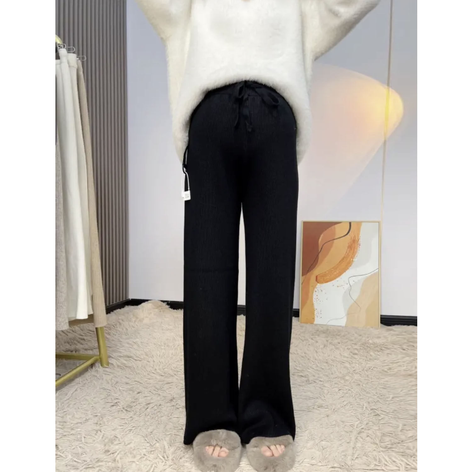 外穿加绒加厚直筒拖地长裤 2025新款 子秋冬季 无托腹孕妇针织阔腿裤