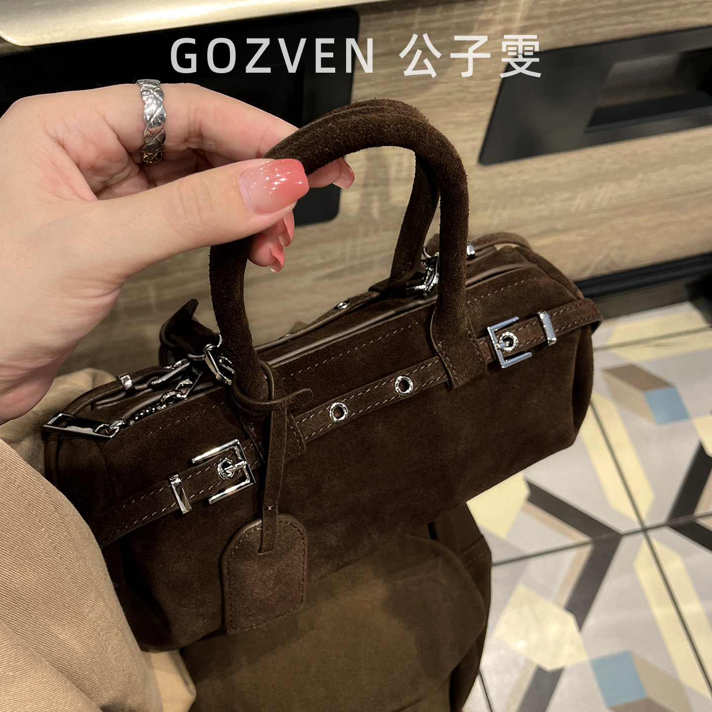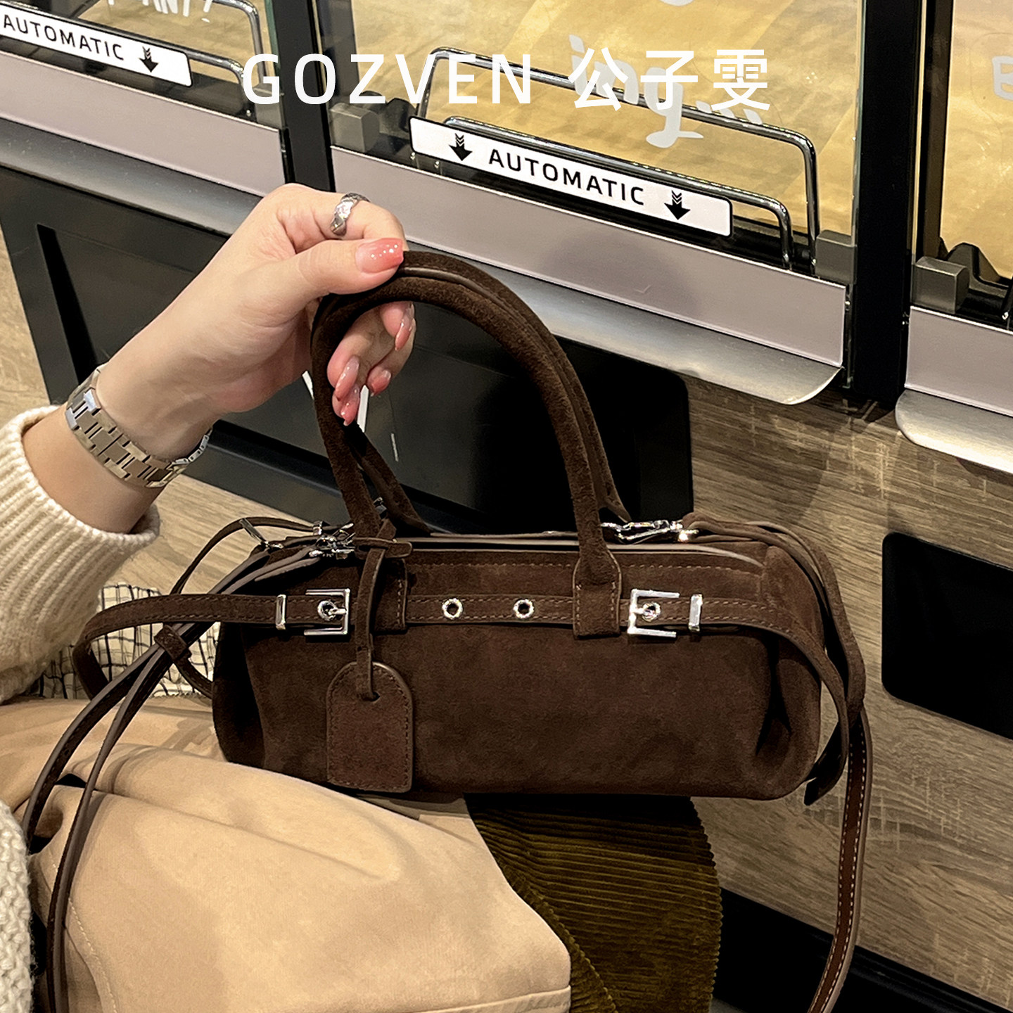 麂皮磨砂牛皮手提斜挎包女 腊肠包2025秋小众赵露思同款 公子雯