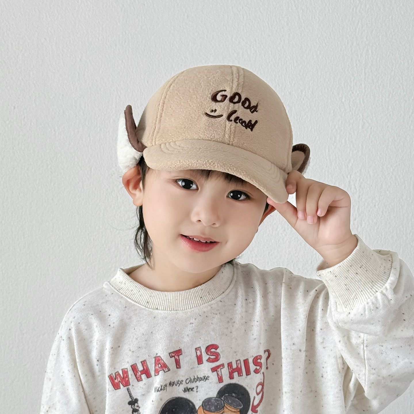 可爱小熊耳朵毛线帽子女2025秋冬季 防寒保暖毛绒绒护耳针织帽 新款