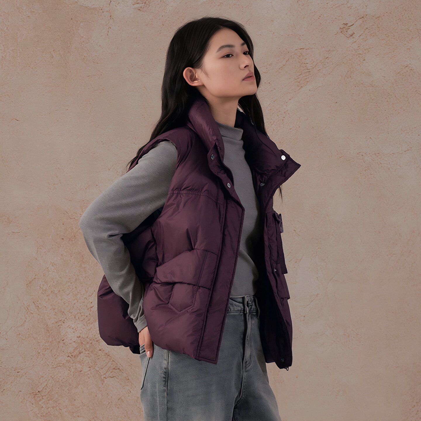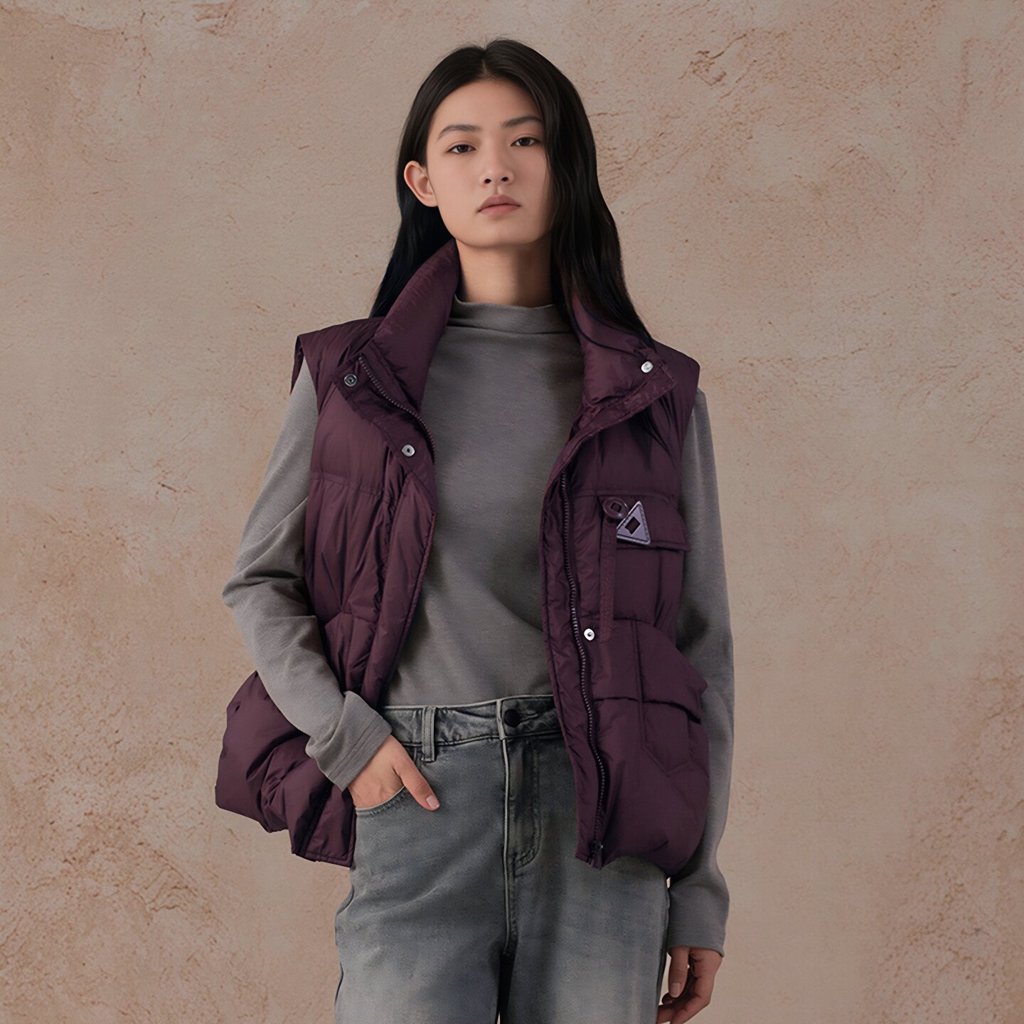 百搭无袖 阿依莲休闲立领羽绒马甲背心女时尚 棉服外套 商场同款