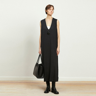 针织连衣裙女秋冬修身 v领长袖 显瘦百褶打底短裙 秋日拍档 MULVAN
