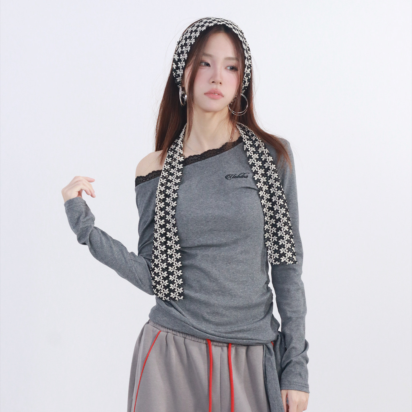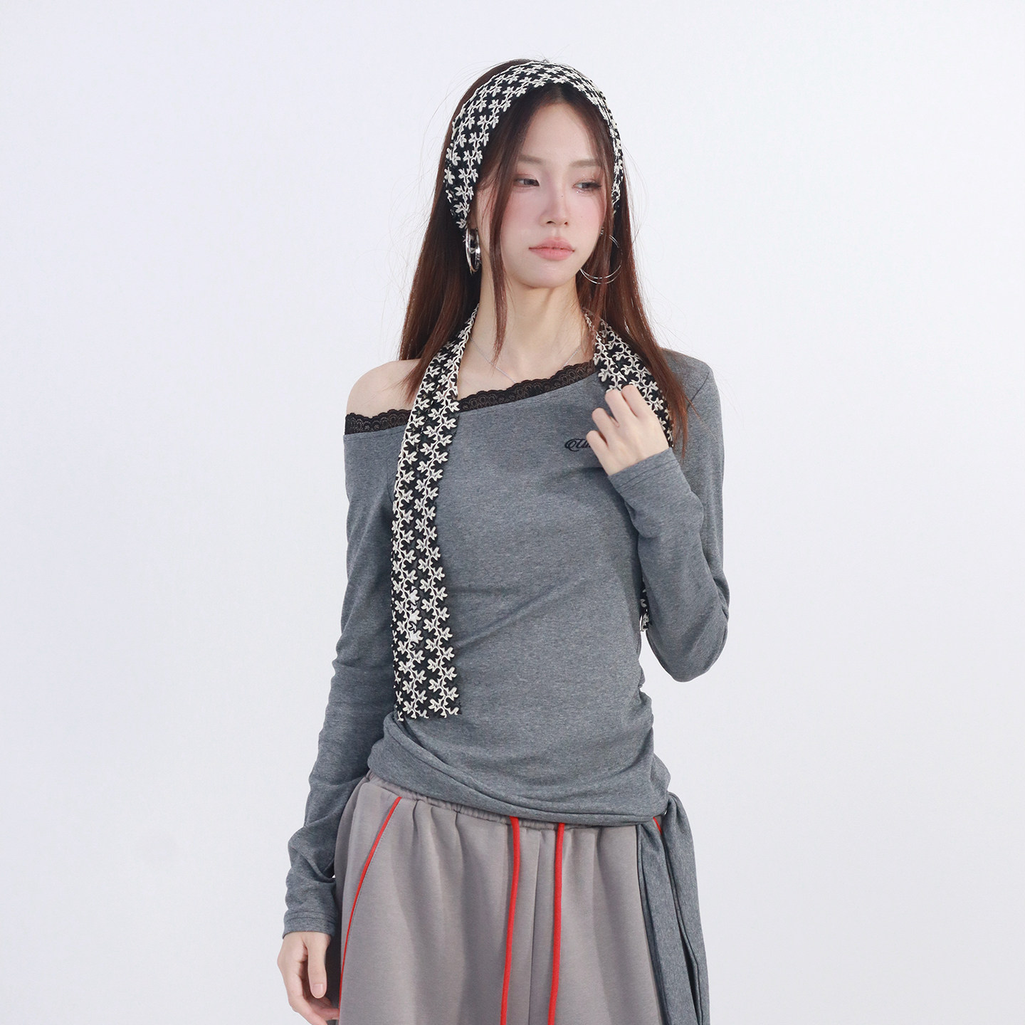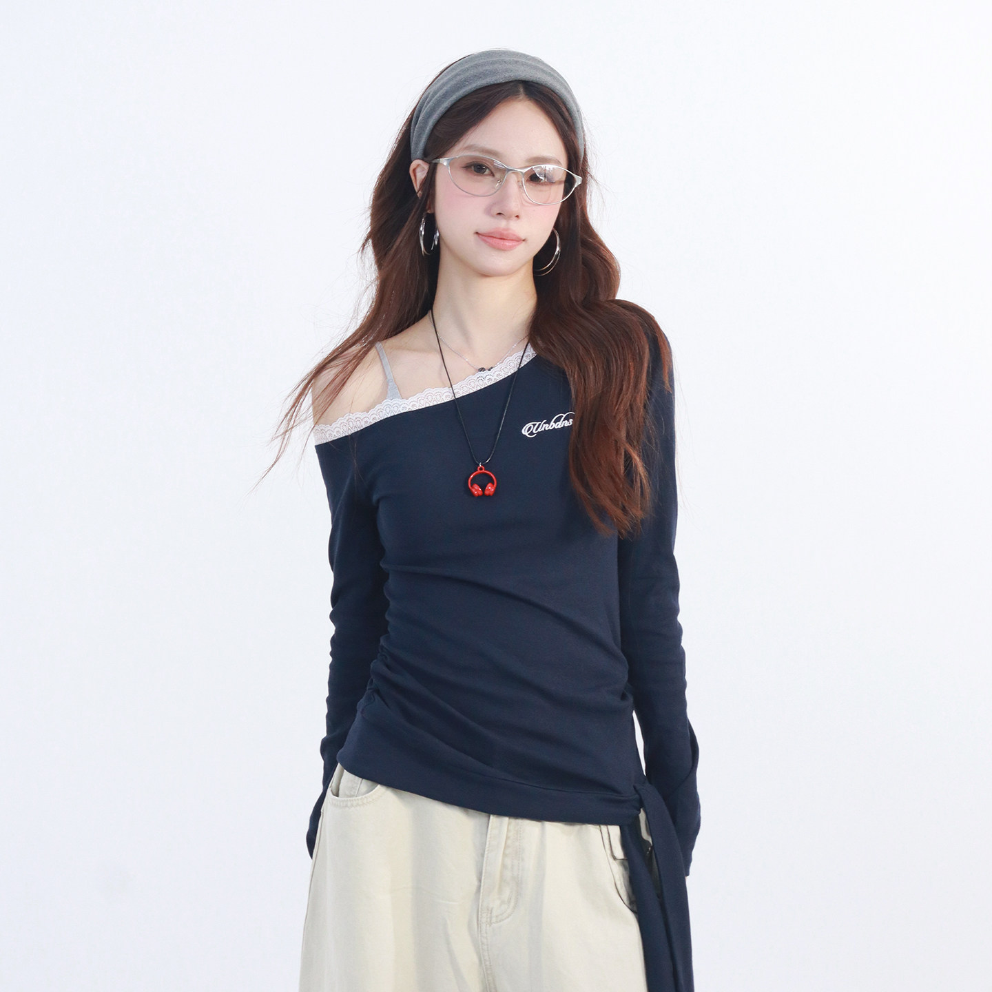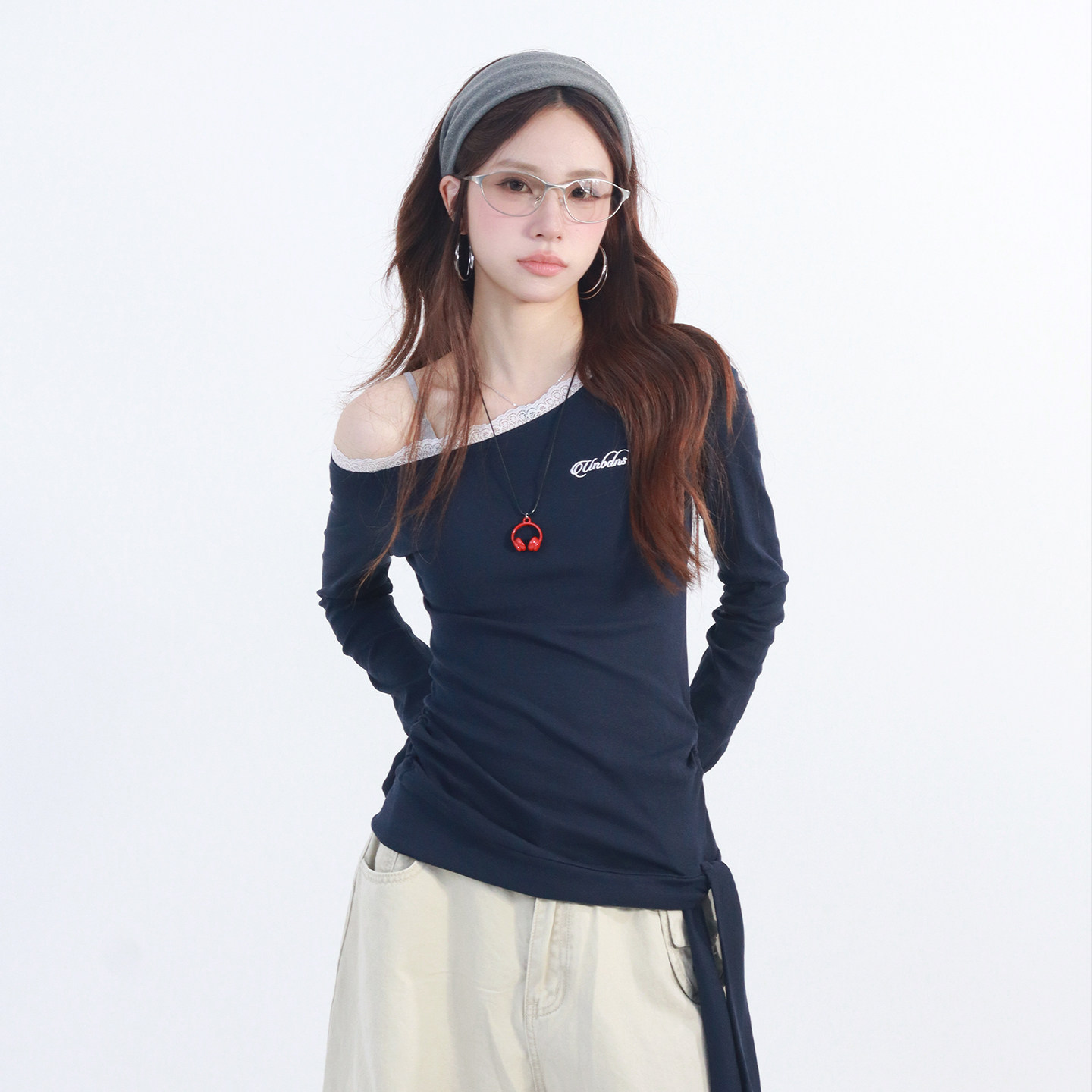 斜肩上衣25175 T恤女纯欲风设计感修身 大佬街舞潮牌美式 辣妹长袖