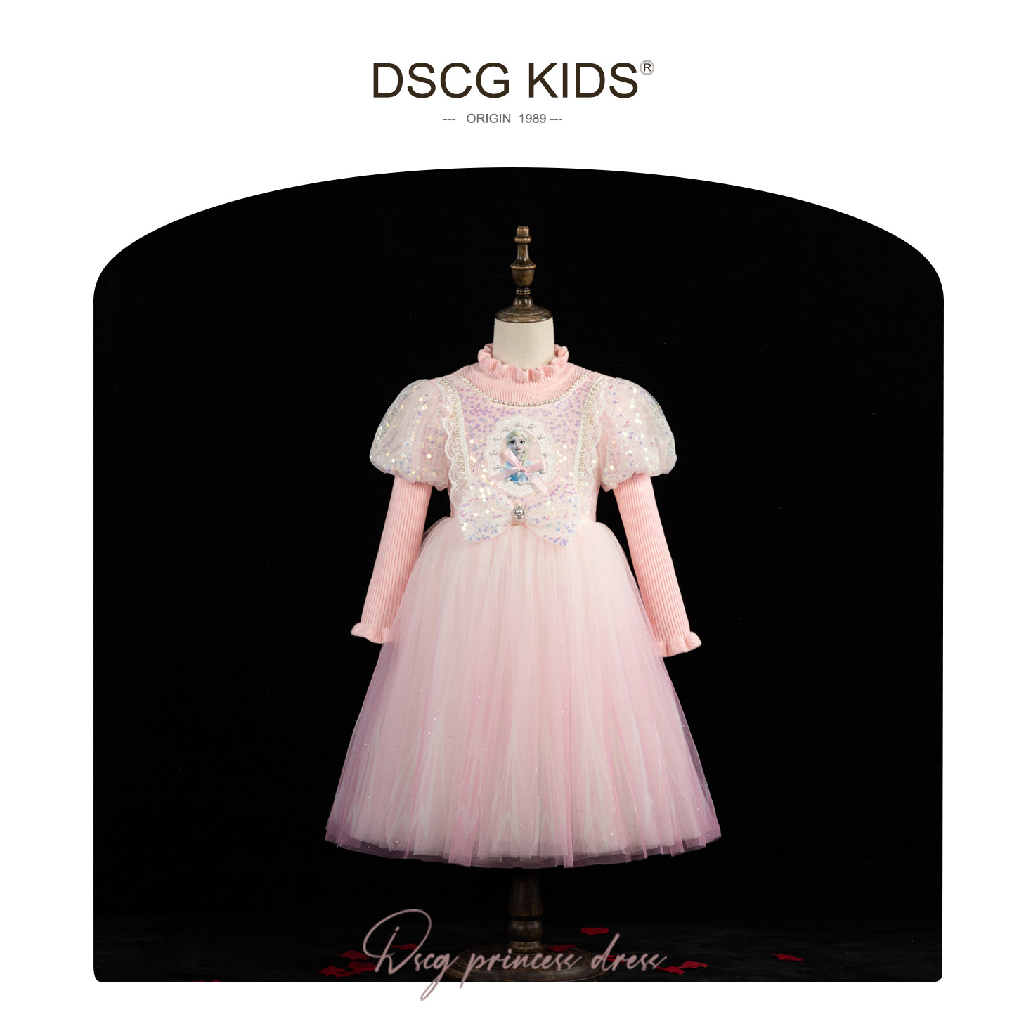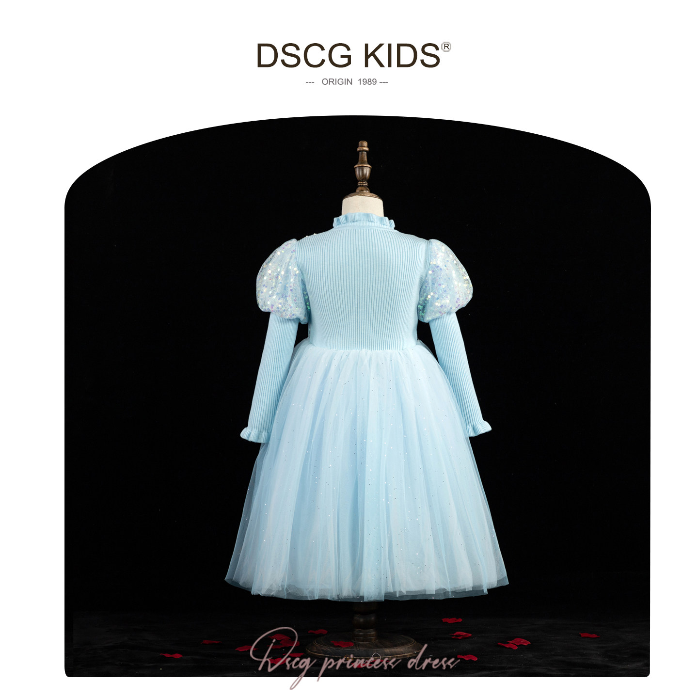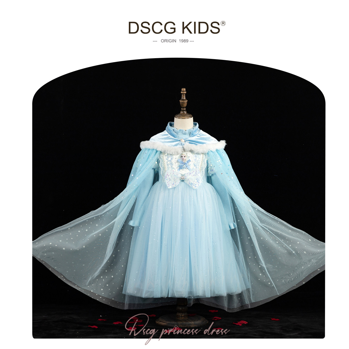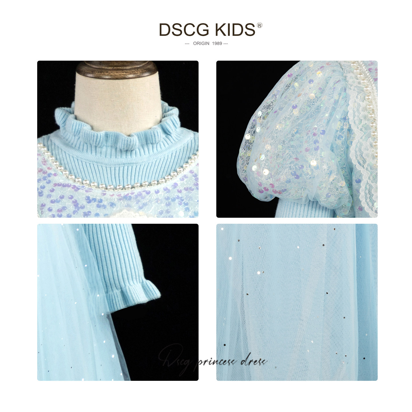 DSCG爱莎公主裙女童秋冬新款 加绒加厚针织儿童艾莎生日连衣裙子