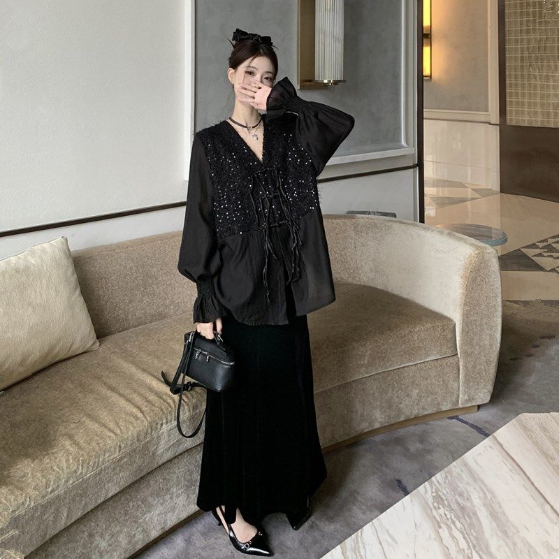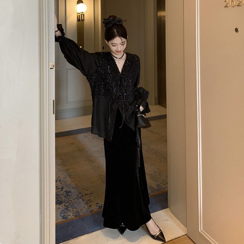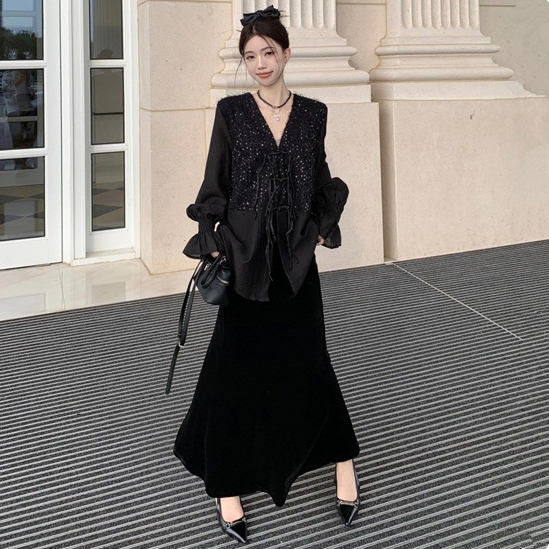纯欲风高级感套装 灰尘邓邓 秋冬鱼骨胸衣上衣半裙两件套 现货