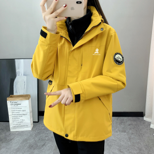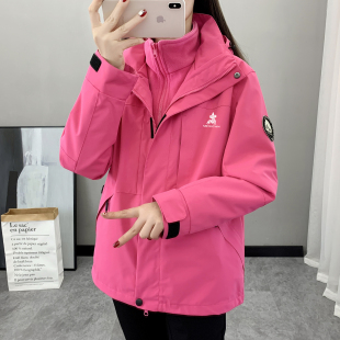 稻草人蓝色冲锋衣女2026新款 登山外套 三合一可拆卸防风防水春秋季