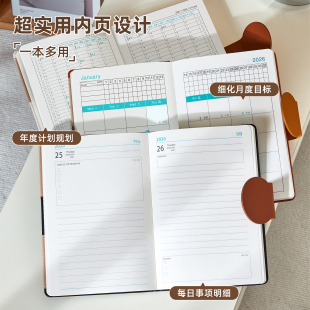 2026年日程本新款 时间管理效率手册日记本一日一页加厚日历记事本笔记本学生考研工作会议打卡本可定制印logo