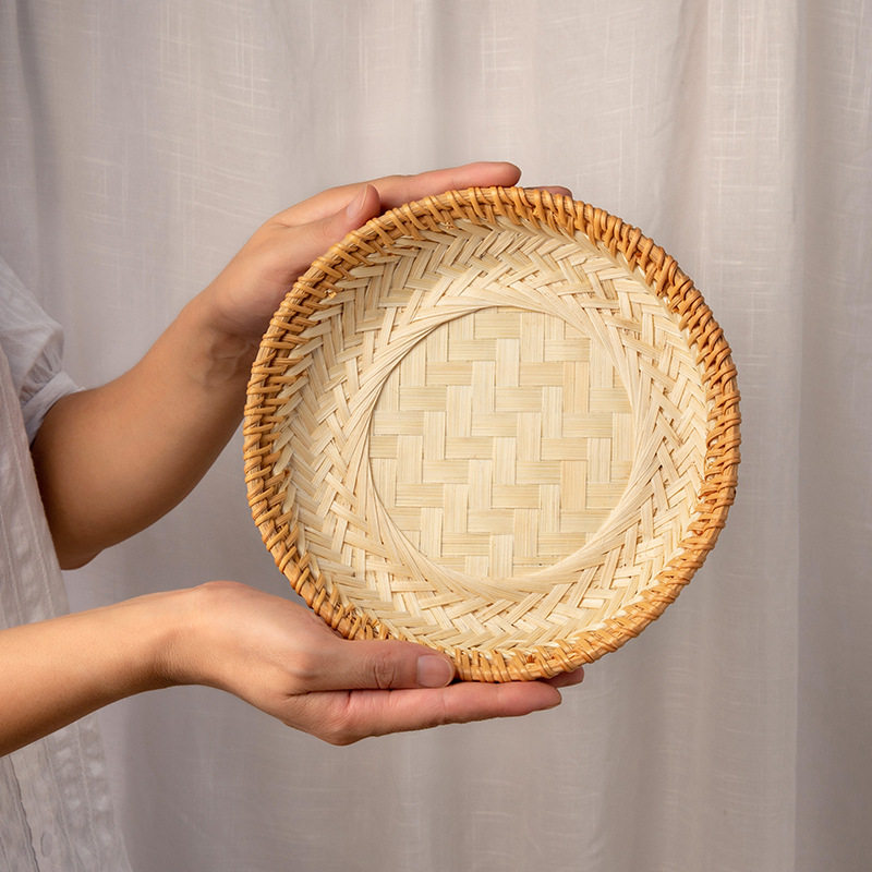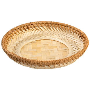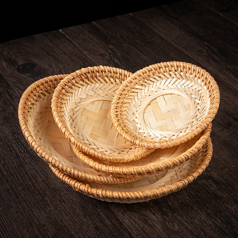 手工竹编制品篮小号圆形收纳篮竹盘竹碟创意装 饰家居簸箕托盘