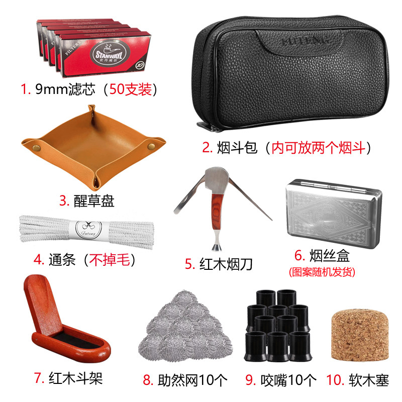 烟具烟斗配件套装 三合一通条压棒软木塞助燃网烟丝盒斗架新手套装