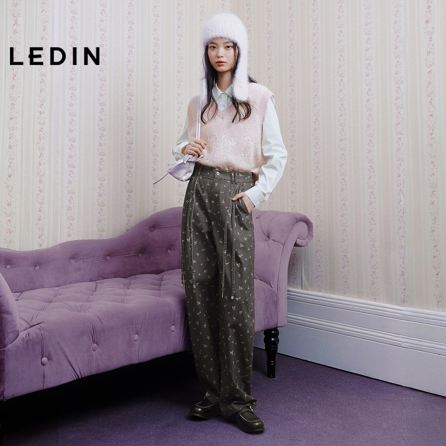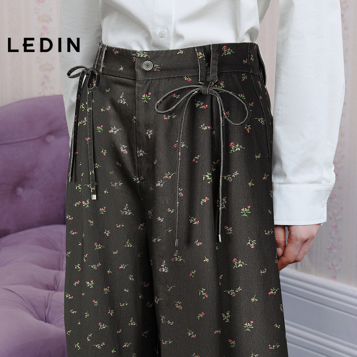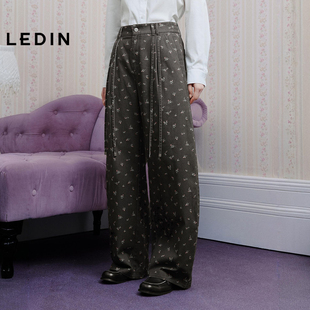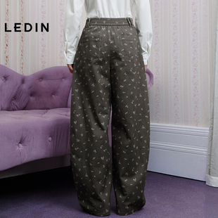 宽松系带阔腿灰色长裤 甜酷碎花弯刀裤 女25年冬新款 乐町印花休闲裤