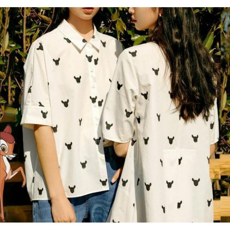 牛仔半裙装 印花宽松情侣小鹿2022明星同款 棉 短袖 二件套衬衫