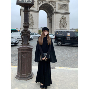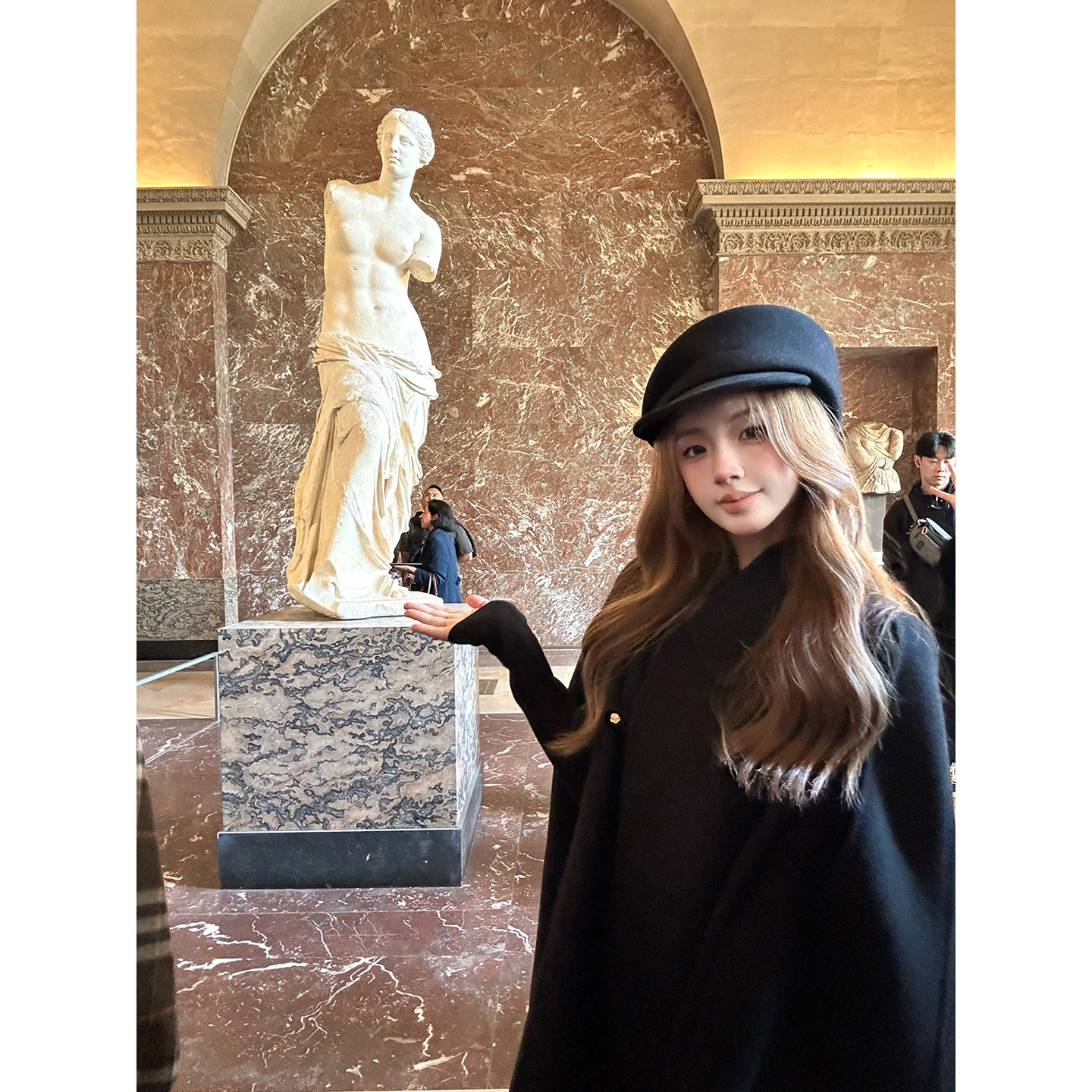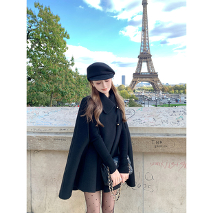 黑色羊毛双面呢斗篷大衣外套高克重丝绒扣 昭和千金 Ashy Snow