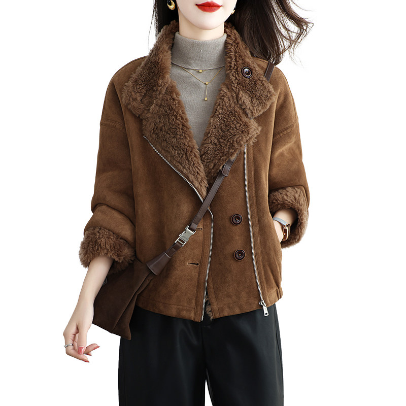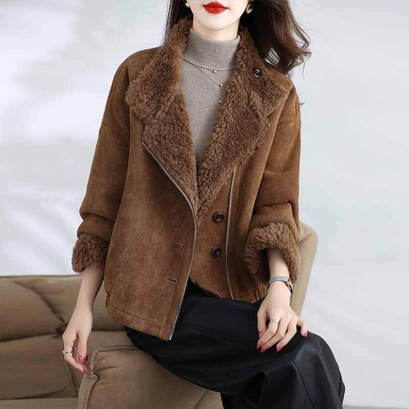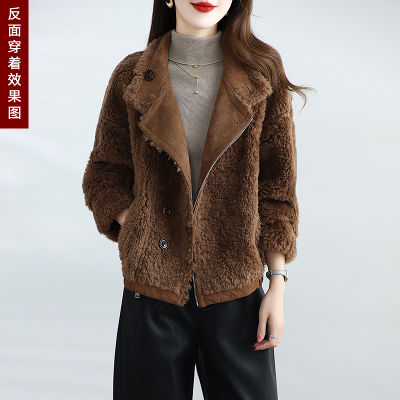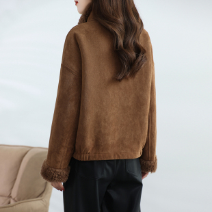 加厚麂皮绒保暖夹克羊羔毛大衣冬季 新款 海宁颗粒绒皮草外套女短款