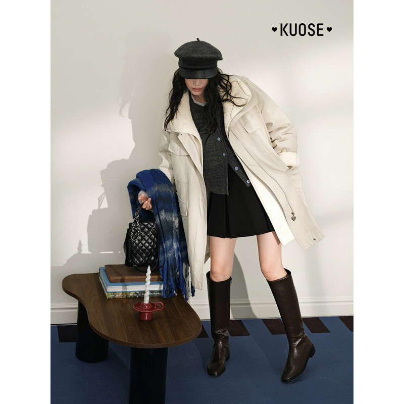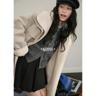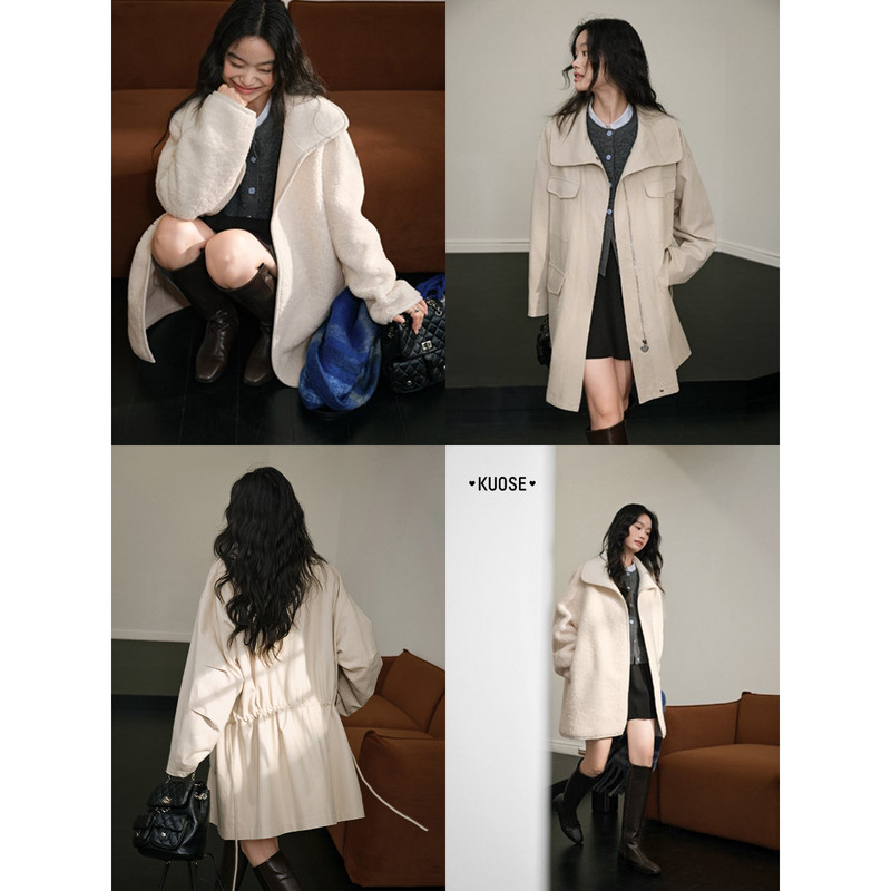 外套中长款 长袖 毛毛上衣宽松2025秋冬季 女装 新款 阔色气质翻领工装