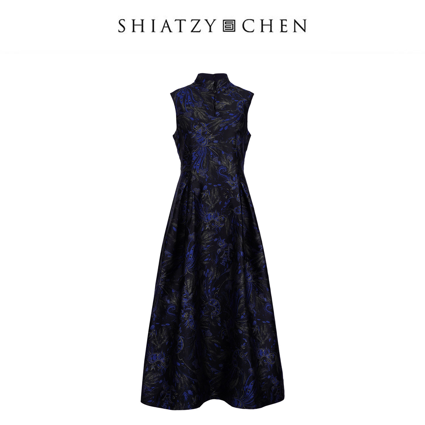 长款 酒午自制 新款 港风复古2025秋季 亚麻网印花连衣裙 秋藤与杏
