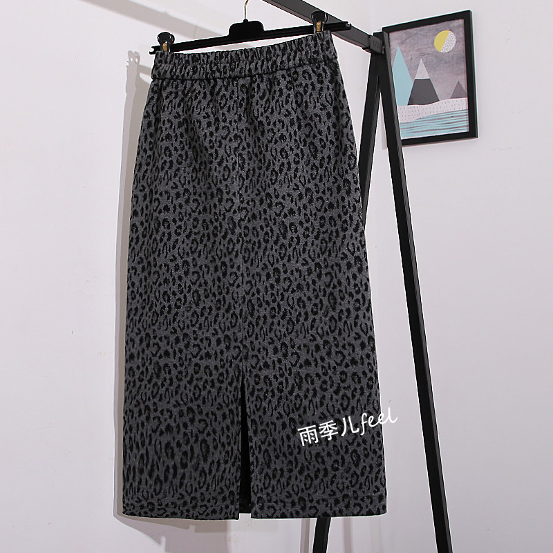 半身裙女胖妹妹高腰mm显瘦后开叉直筒长裙 黑色毛呢款 巨好看 大码