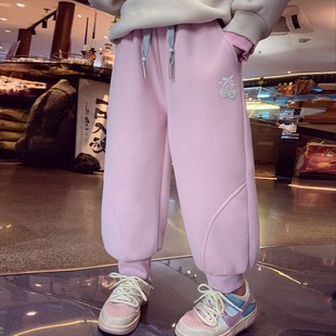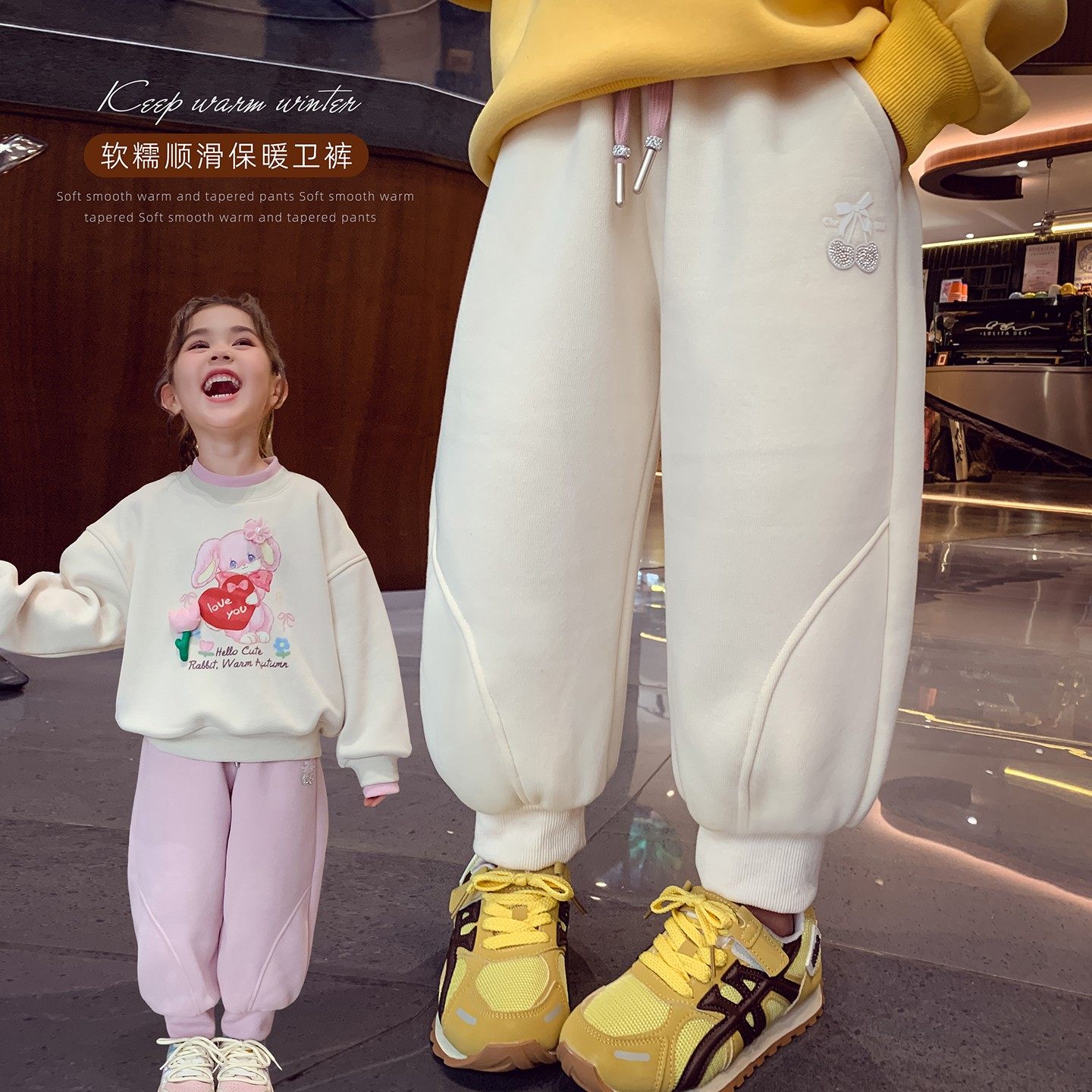 浅色糯米休闲裤 子 女秋冬加绒胖妹妹mm高腰宽松显瘦梨型身材阔腿裤