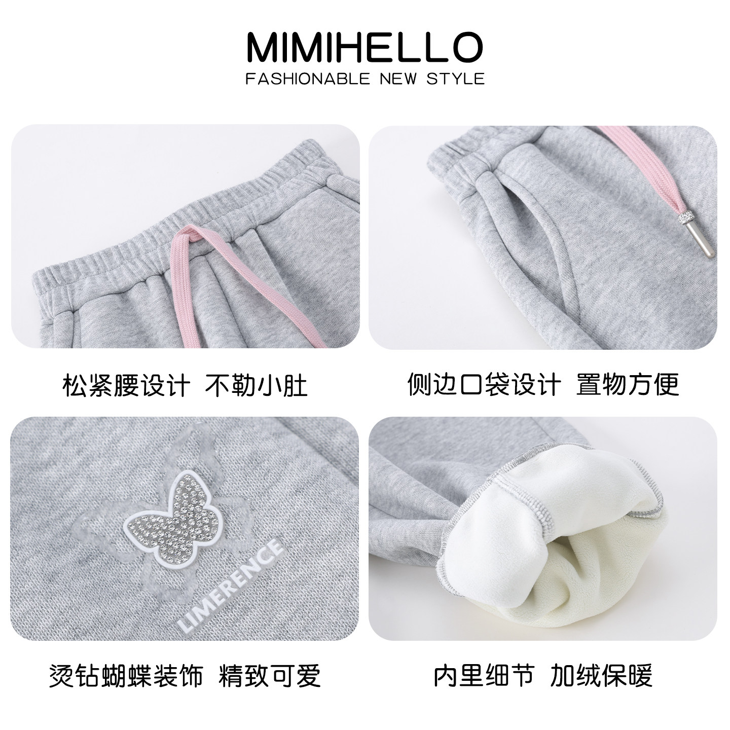 显瘦垂感休闲裤 格雷系加绒黑灰色阔腿慵懒风格 大码 子女秋冬季 子裤
