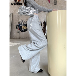 运动裤 宽松直筒卫裤 女春季 高腰垂感休闲阔脚裤 2026新款 藏青色美式